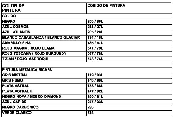 Ya lo sabia gracias, pero esa referencia en mi coche corresponde al rojo que era su color original, hace unos años lo pinte de negro y ahora tengo que pintar algunas cosas pero no tengo la referencia, es por ello por lo que me hace falta.