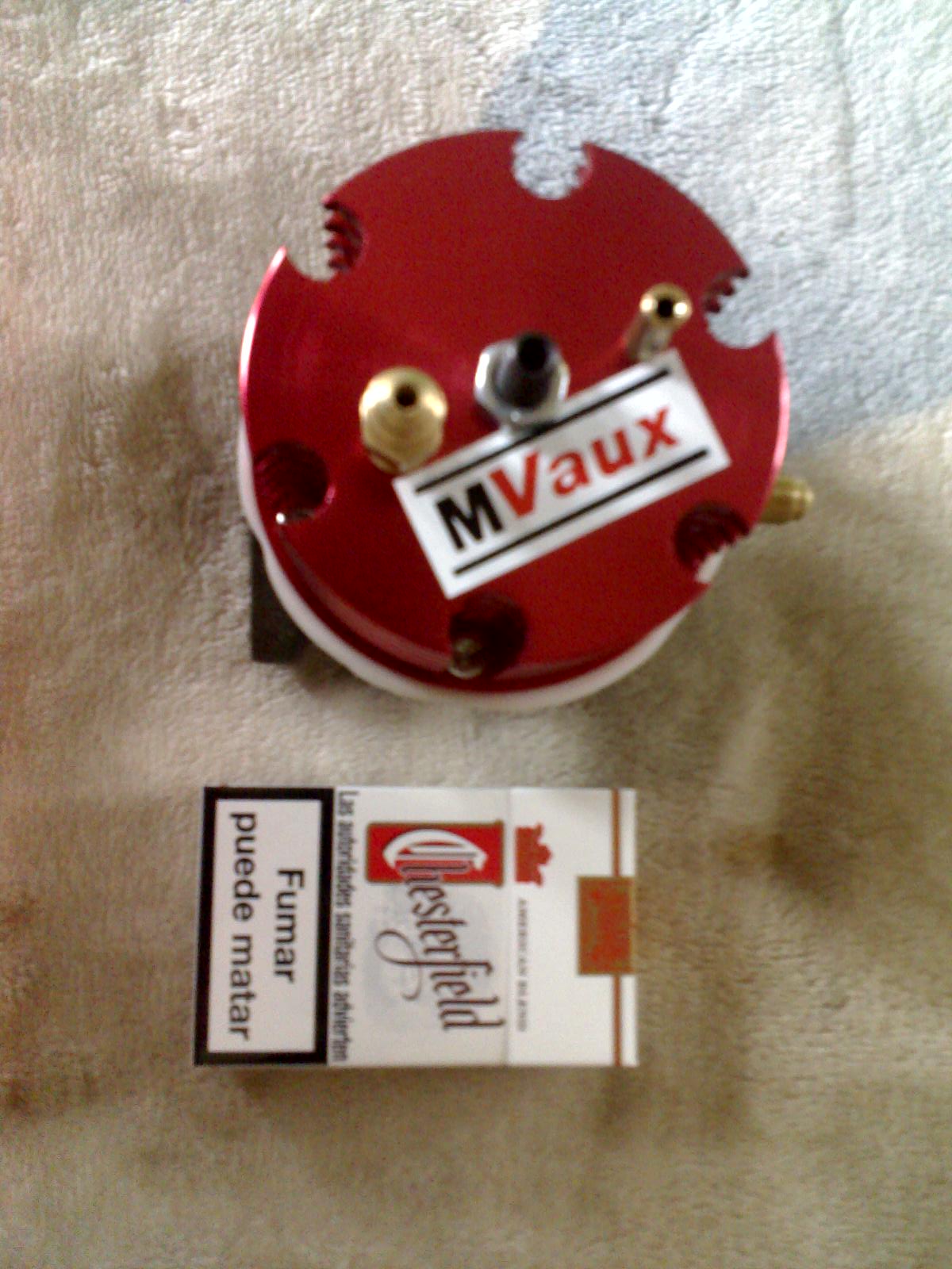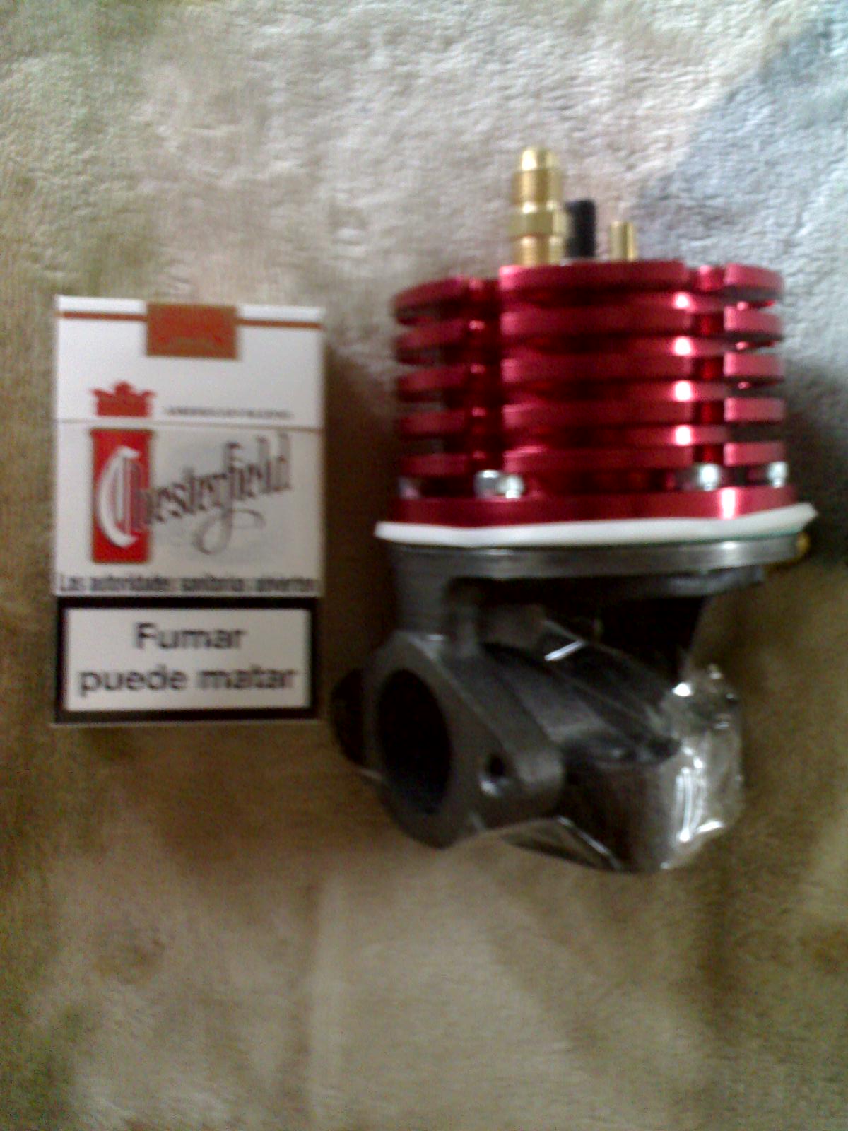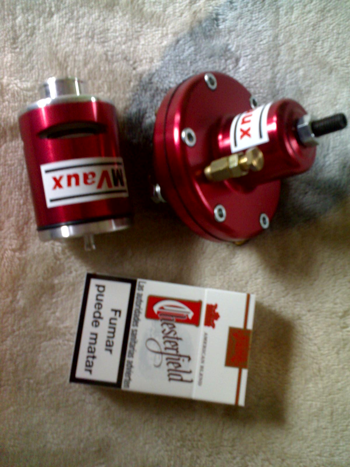 me acaba de llegar el kit de turbo, y decir que tiene una pinta muy buena. a continuacion os pongo fotos, que bueno, son parecidas a las de la pagina mvaux, pero comparando el tamaño con una cajetilla de tabaco, je,je,je,.
