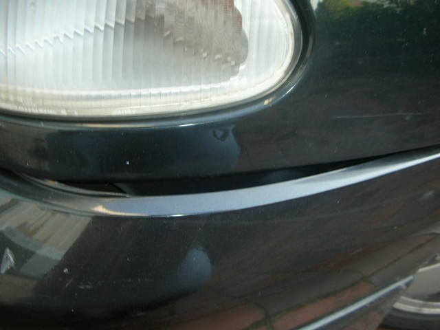 Pues eso. Resulta que hace un mes ya más o menos, durante las pocas veces queda el coche aparcado en la calle, al volver me di cuenta de que tenía la defensa delantera sacada de sitio por las 2 curvaturas. Así está ahora: