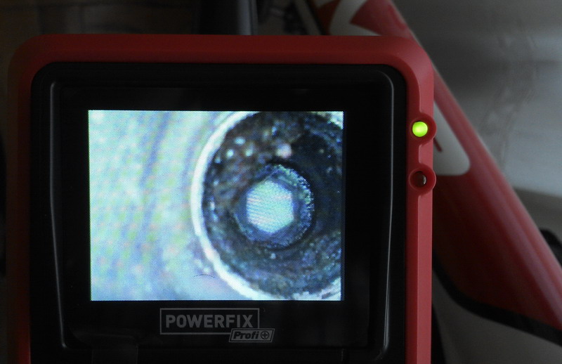 Como no tenía ningún cilindro a mano xDDD lo probé con el eje pedalier de la bici. En esta primera se ve un poco de biela y la entrada el eje y en las dos siguientes la secuencia según meto la cámara hacia el interior. La calidad es bastante aceptable para el precio, y hay que tener en cuenta que esto son fotos de la pantalla, por lo que se pierde algo de definición por el camino.