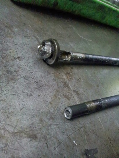 Claro que, eso no es todo! Convencido de que he salido airoso del problema, aflojo otro tornillo y al ir al siguiente ¡CLACK! SE PARTE OTRO TORNILLO! Es que Opel monta pernos de plastilina o que??