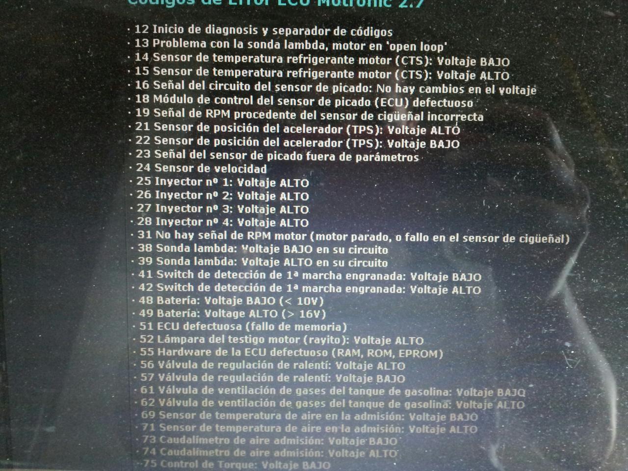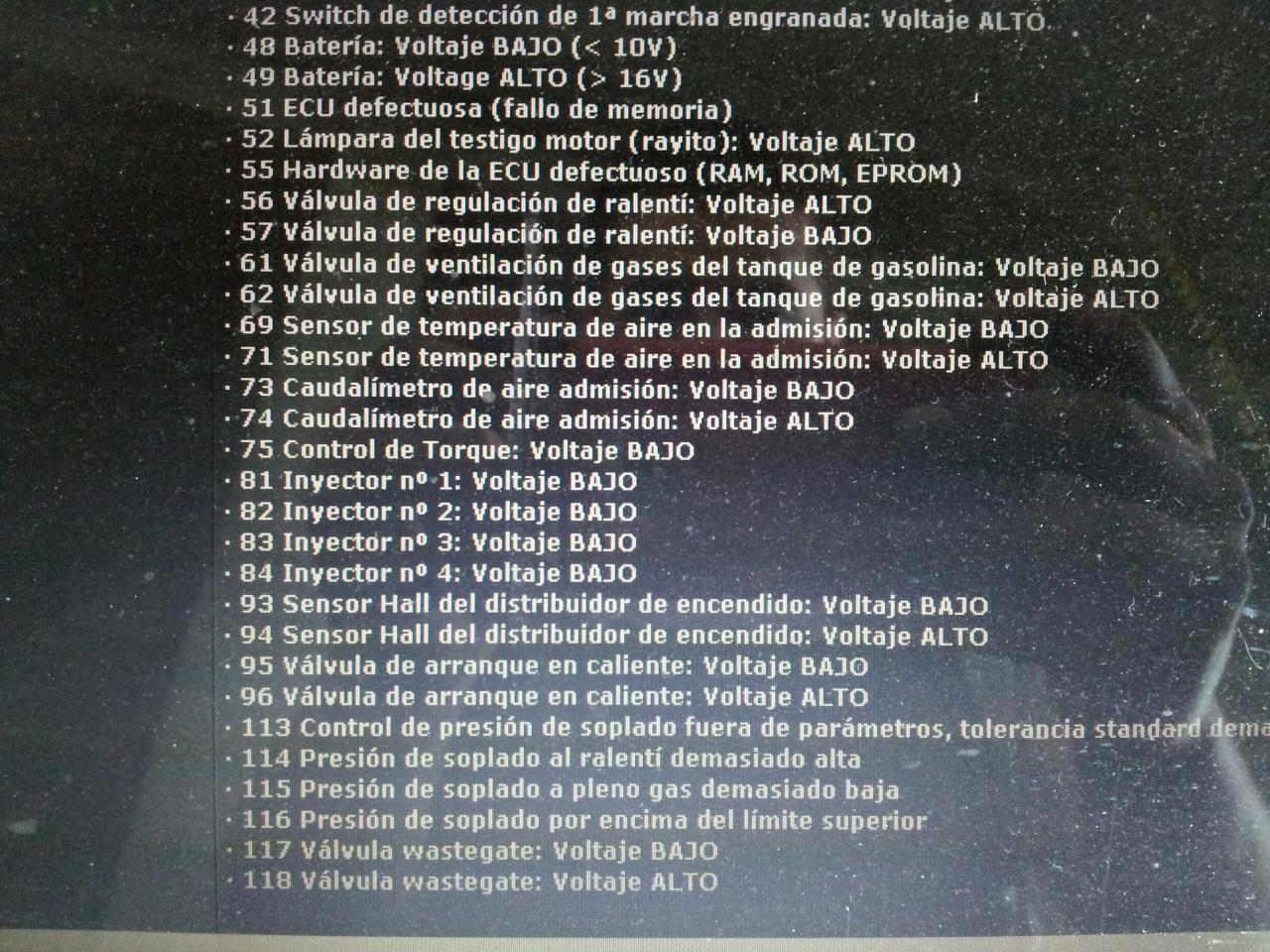hola!!hoy despues de tiempo sin andar con el let a vueltas me dispongo a encenderlo cuando me fijo que el testigo de fallo motor no se apaga,hago autodiagnóstico me da fallo 31 sensor rpm lo normal con motor apagado,luego con el motor encendio me da fallo 117 voy a la tabla de fallos y me dice que es válvula wastegate: voltaje BAJO,alguien podria explicarme que fallo es?válvula amal??:confused: gracias de antemano.sludsss