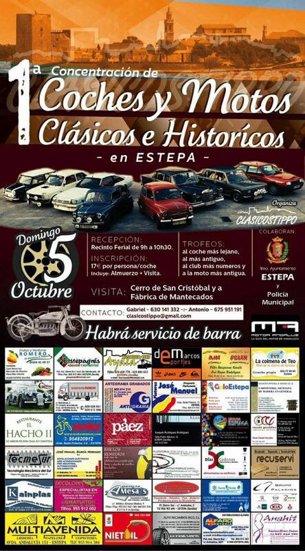 Buenos días. Tal como dice el título. Hemos organizado la gente del club de clásicos de mi pueblo una concentración de clásicos en Estepa (Sevilla) para el 5 de octubre de 2014. Soy uno de los que recoge las inscripciones soy yo.