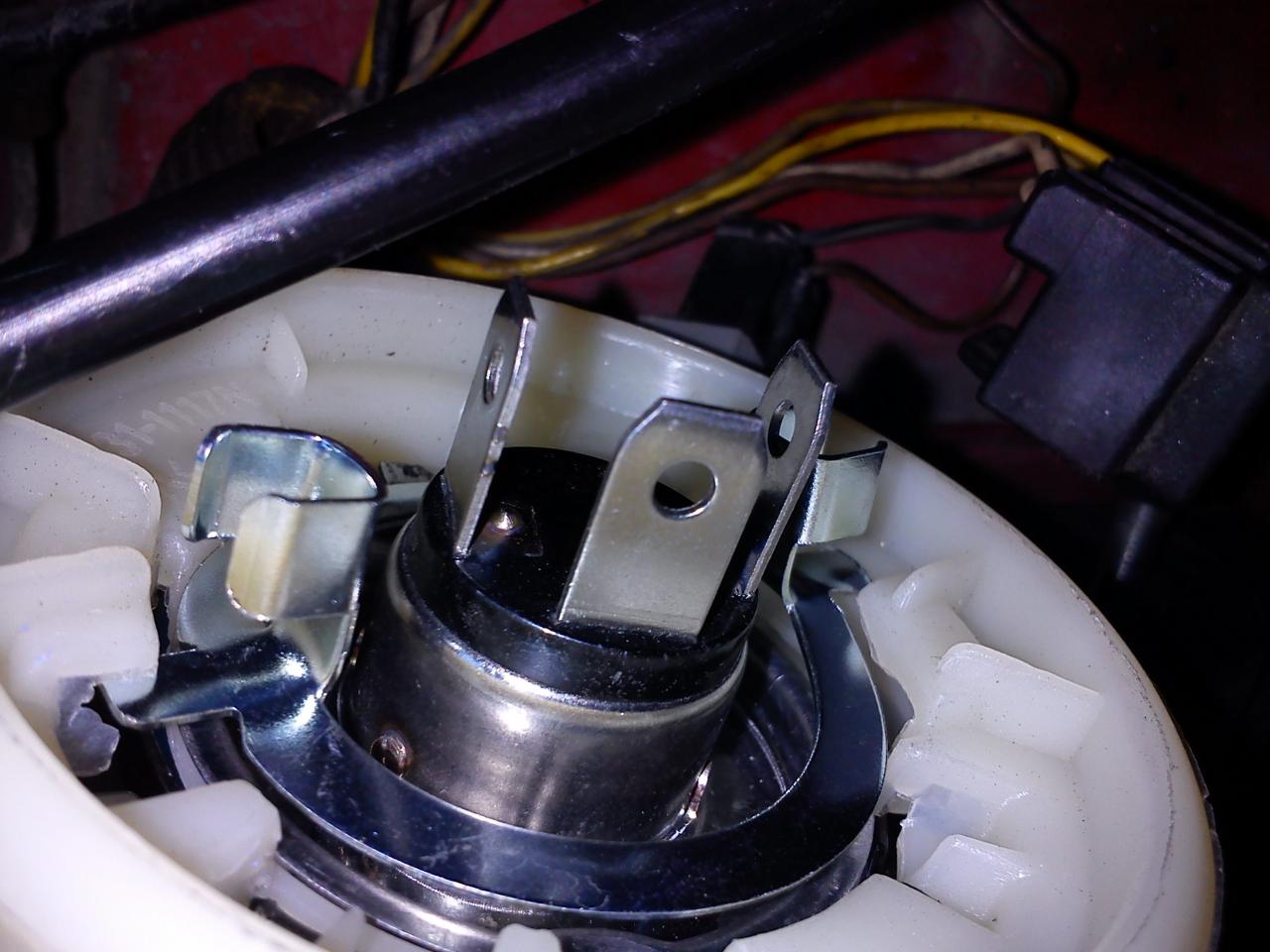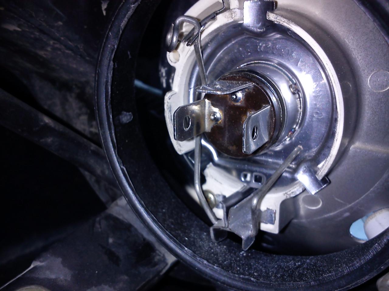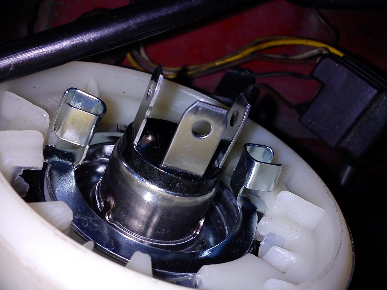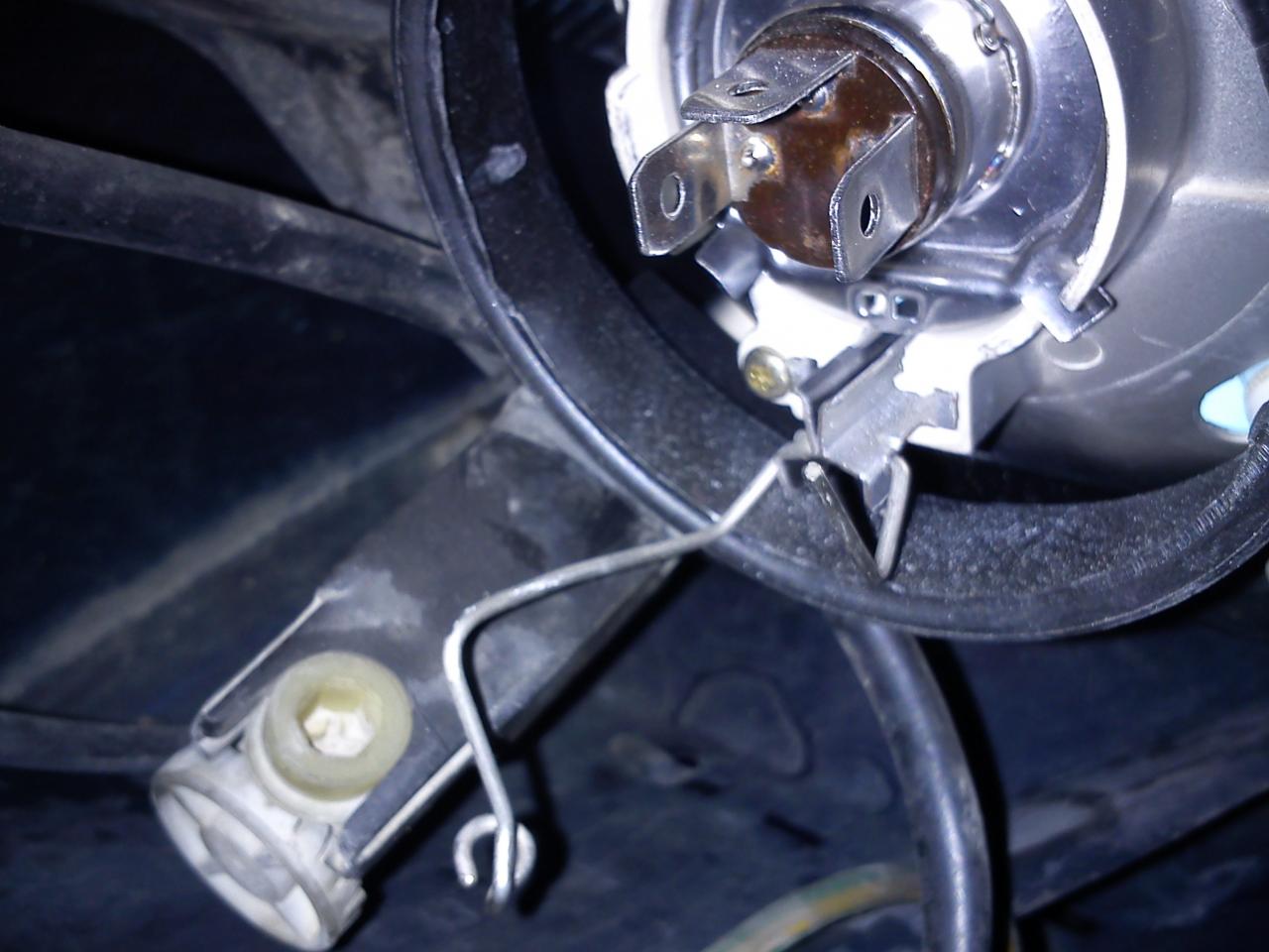 Fijáos y recordad la posición de los 3 pines o conexiones de la bombilla. Que yo sepa, lo normal es que el de enmedio quede arriba. Cuando coloqueis la bombilla nueva, tendrá que ir en la misma posición