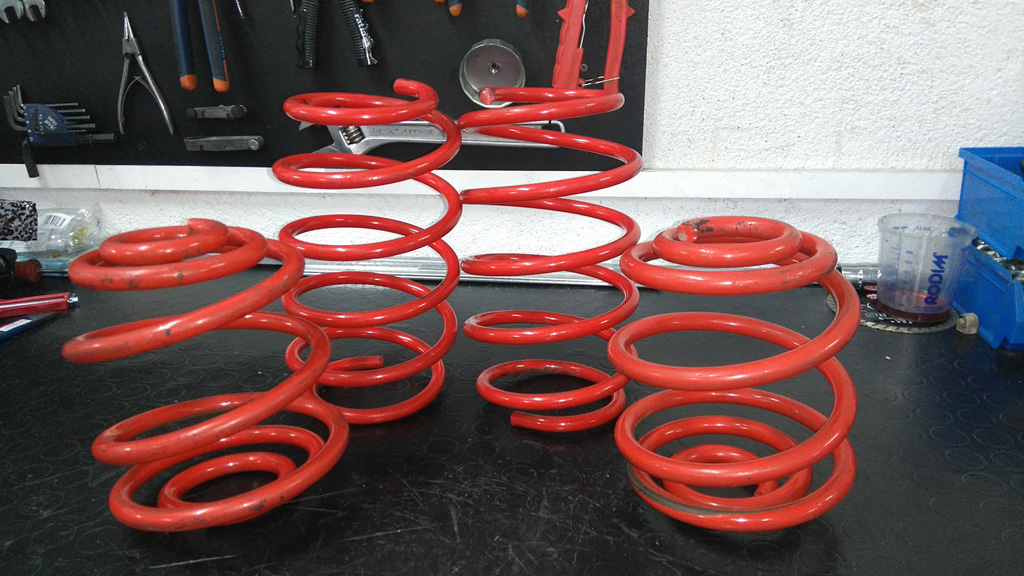 Muelles para Kadett: desconozco el fabricante, ya que no hay nada escrito, pero deden bajar unos 40 mm aprox, nunca lo medí. Si requerís fotos, subo alguna del batallas, aunque debe haber mil por el foro --> 60€
