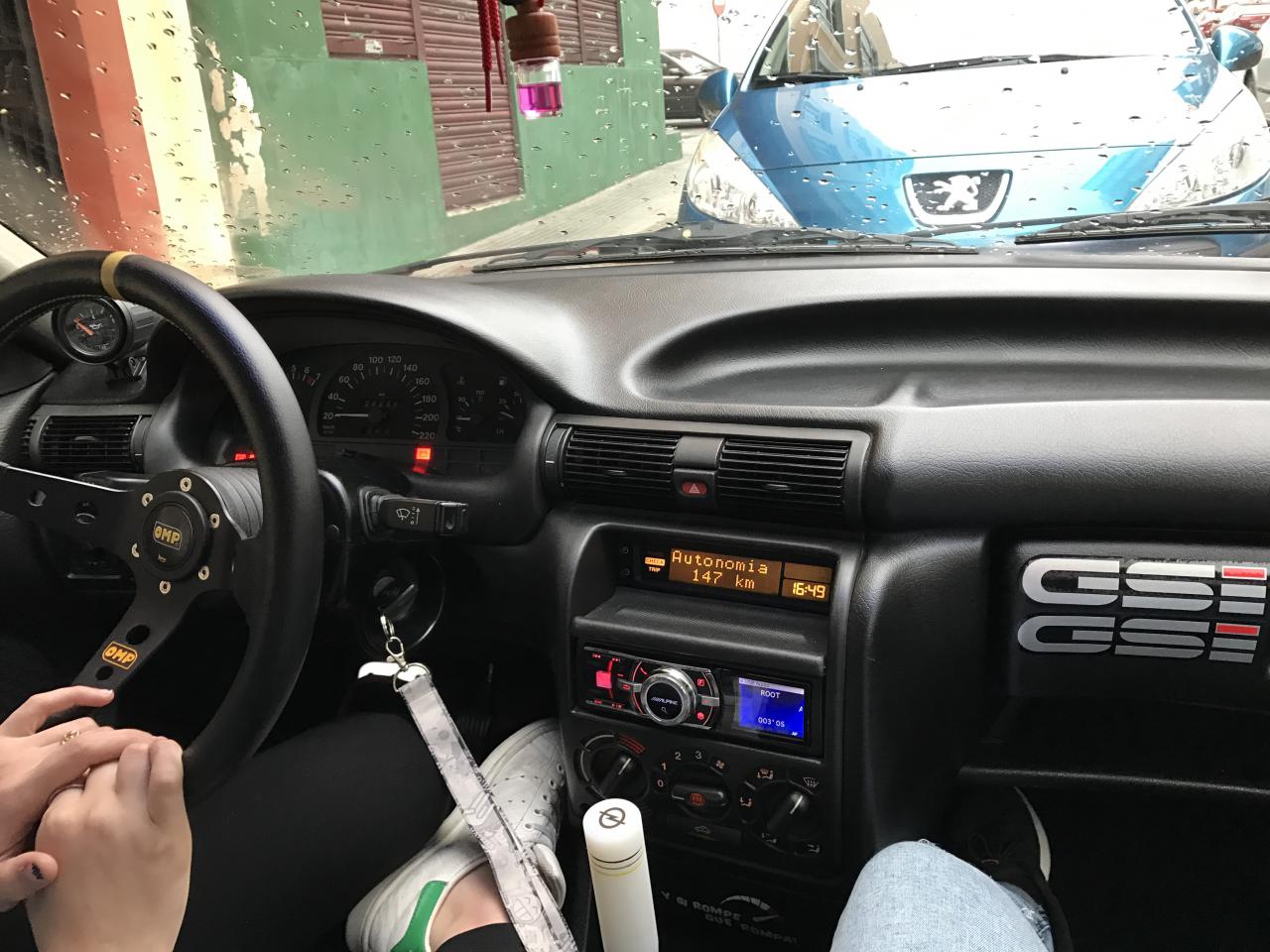 Por dentro está impecable, llevo volante omp y un pomo alto blanco de teflon por lo demás todo de serie menos la radio y los altavoces que llevo una alpine y todos los altavoces clarion