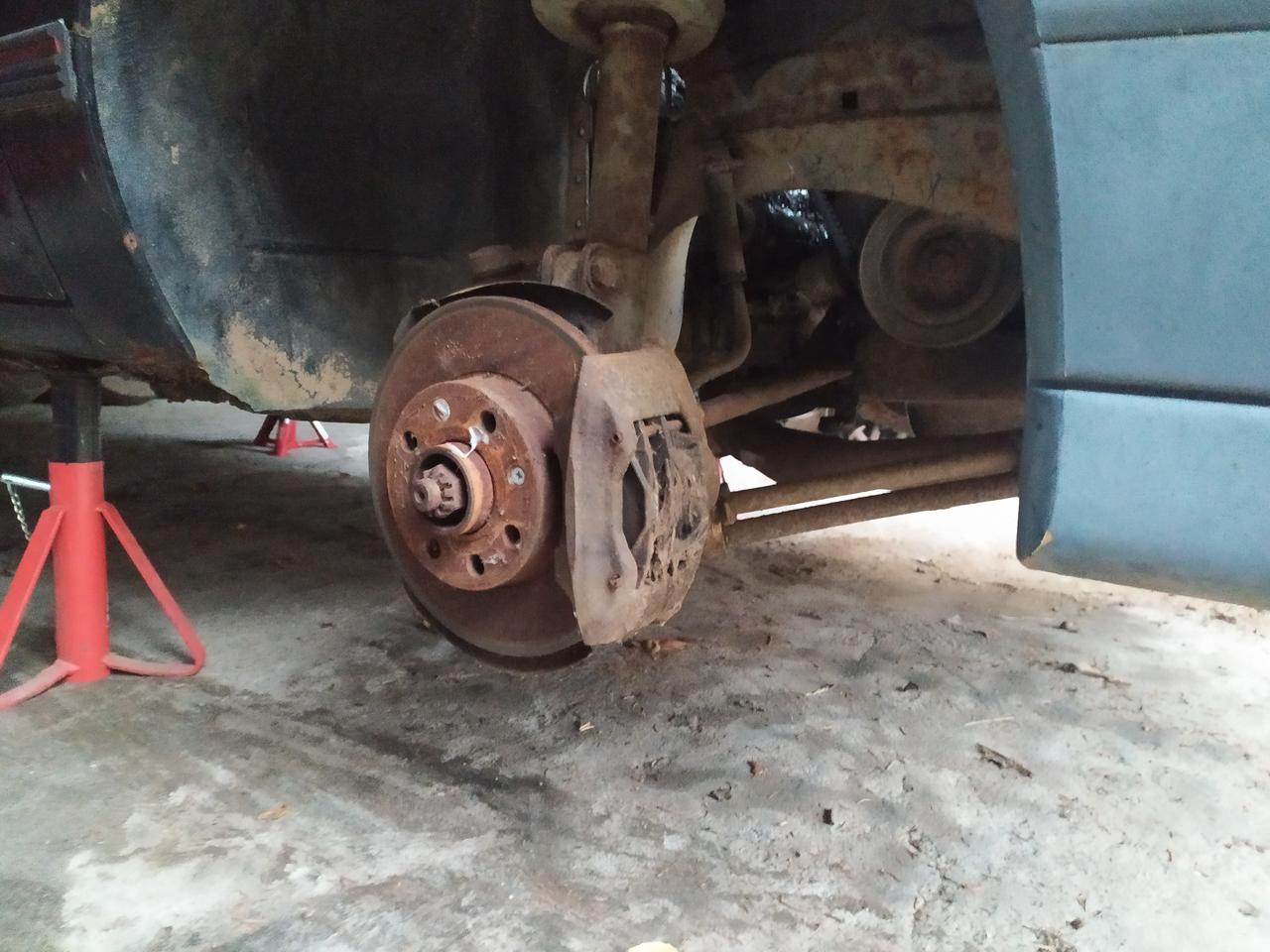 Hoy, primer dia de trabajo, sacamos una aleta y defensa que tenian un golpe, barra estabilizadora, mangueta y trapecios para lijar y pintar.
