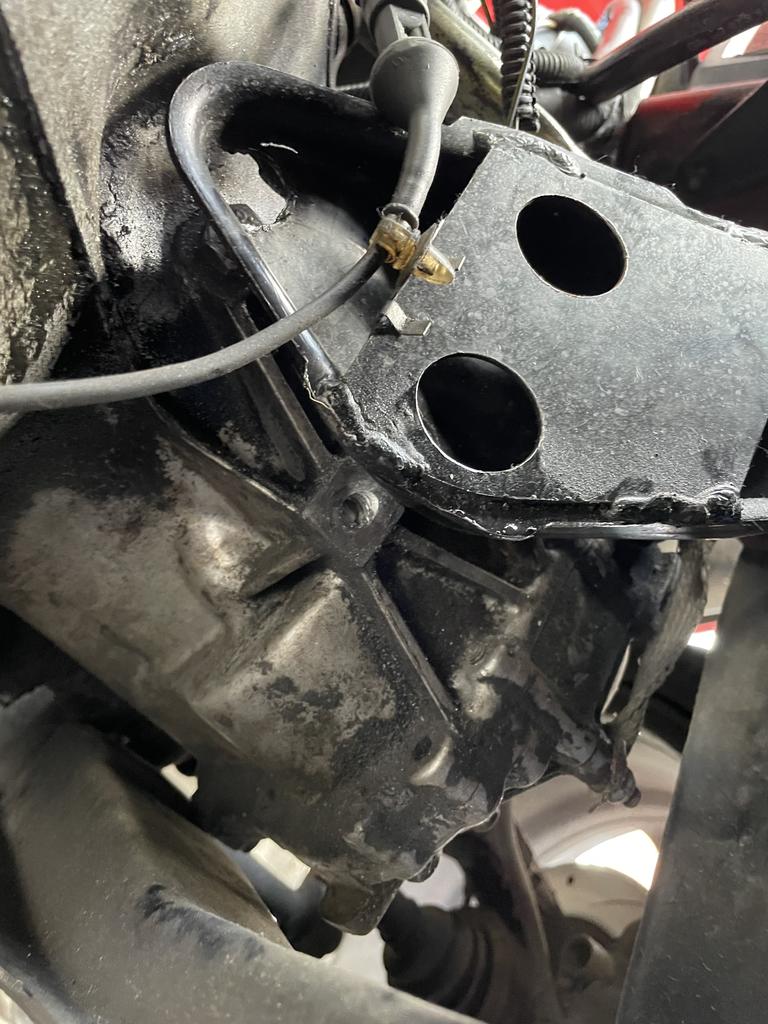 El taco motor izquierdo lleva un soporte metalico que sujeta la caja con dos tornillos. Pues ese soporte metalico se me ha roto y tengo el motor descolgado lo que hace que cuando meto embrague la caja pegue una hostia.