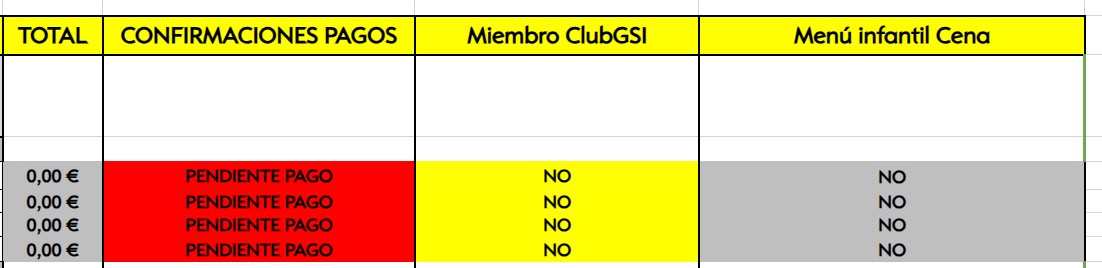 - También son todos desplegables. El primero por favor NO LO UTILICEIS NI AUNQUE HAGAIS EL PAGO, lo marcaremos nosotros cuando confirmemos el pago. El segundo es simplemente para sacar estadísticas, solo hay que poner si sois o no miembros del club. Y el último despegable, corresponde a si la persona que viene es un niño y va a comer menú infantil, las cenas son más baratas y el precio del alojamiento se recalculará automáticamente.