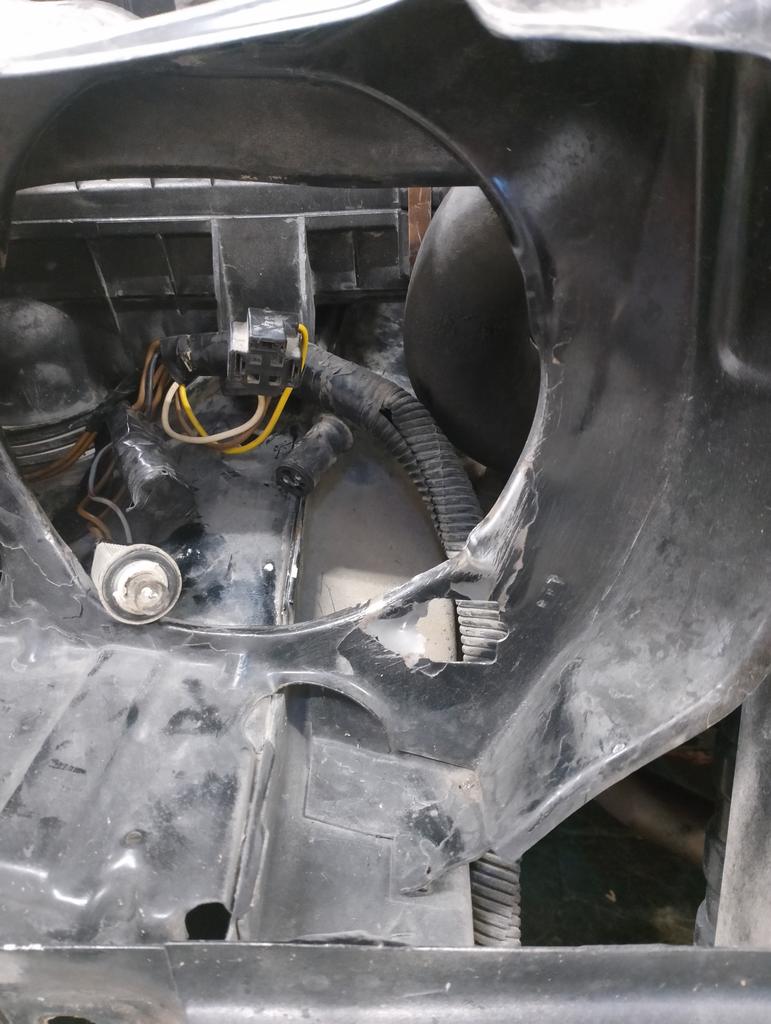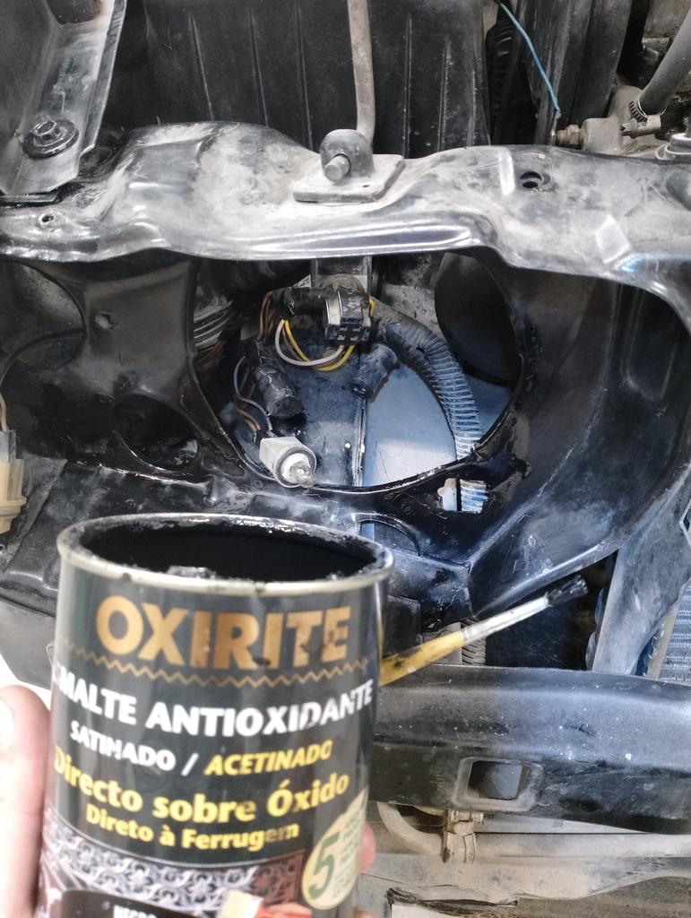 Al colocar el faro que tenia el soporte plástico roto vi que el coche había tenido un golpe en el alojamiento y estaba doblado, al enderezarlo se descascarillo algo pintura y así un poco cutremente lo solucioné.