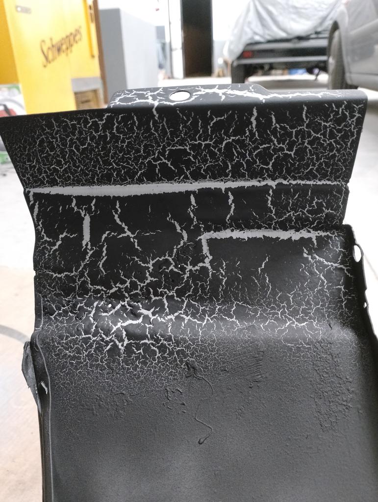 Al final unas capas de antigravilla que no se por qué se cuarteaba. Probé de varias formas. A dársela cuando el esmalte estaba aún mordiente, dejando dos horas y dejando secar un día. Siempre cuarteaba.
