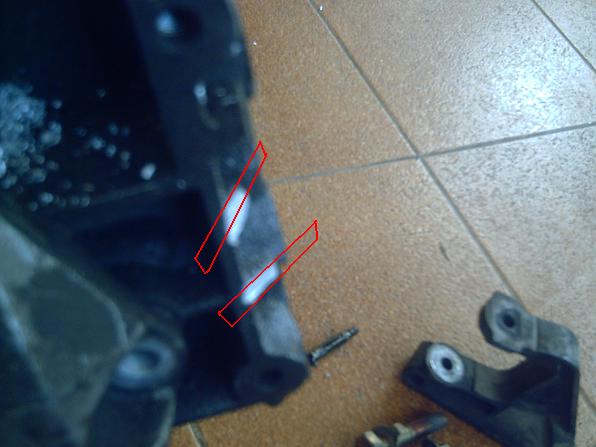 Ya se puede poner el taco, pero surge otro problema: no atornilla a fondo, porque pega con dos esquinitas de caja de cambios. Solucion le doy el corte: