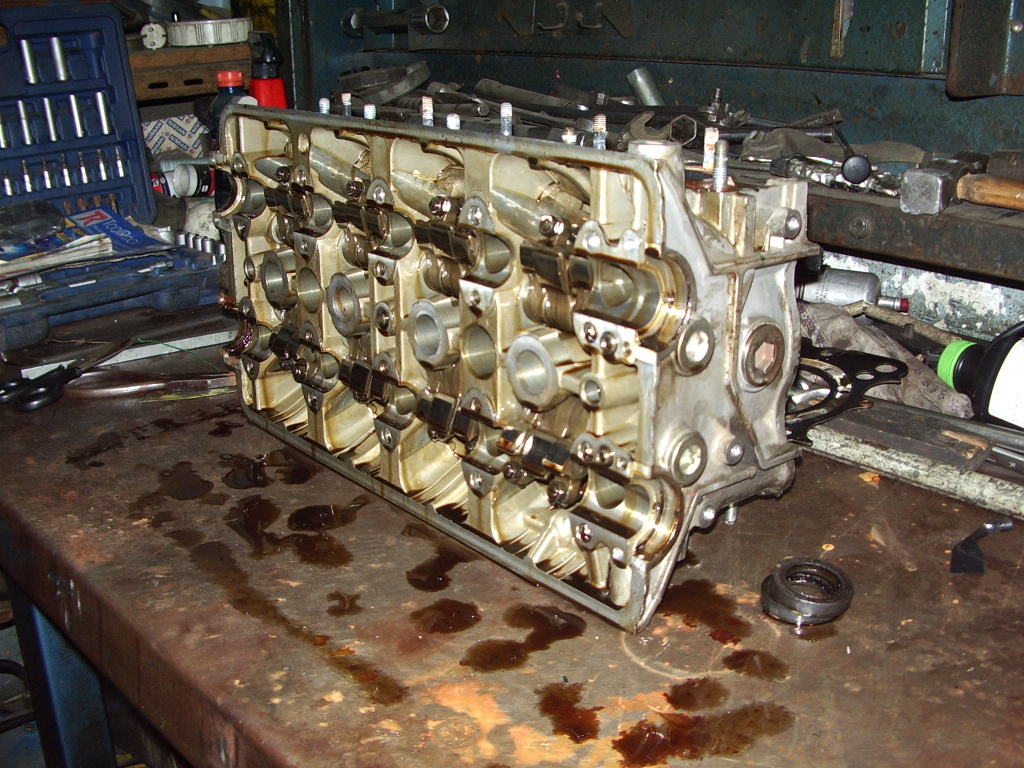 Y aqui el plato fuerte, la culata, para los que no hayais visto nada parecido, ojo al dato con los balancines, lleva 6 levas por cilindro... una flipada.