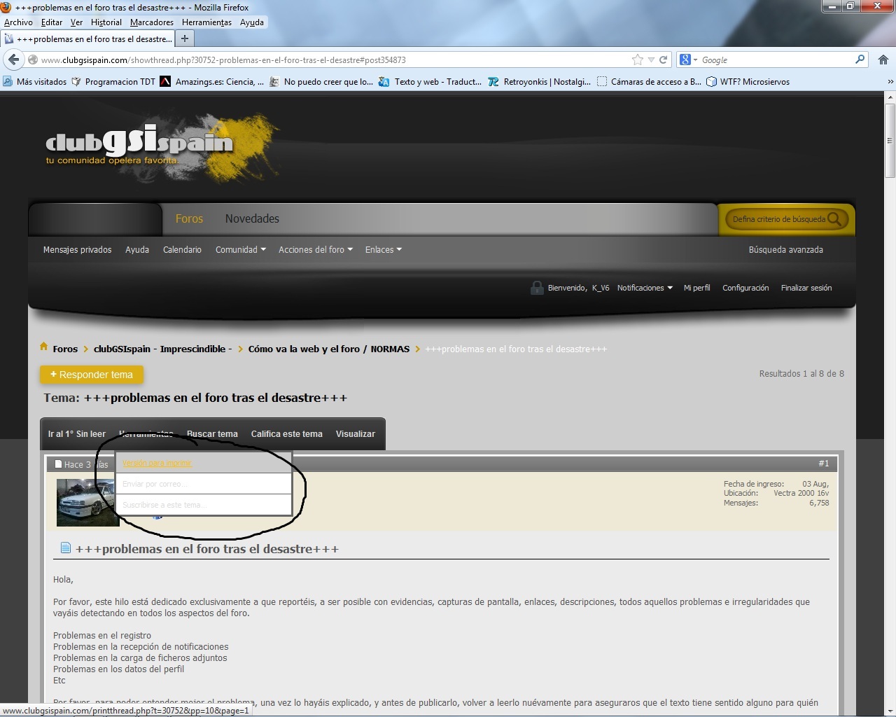 +++problemas en el foro tras el desastre+++