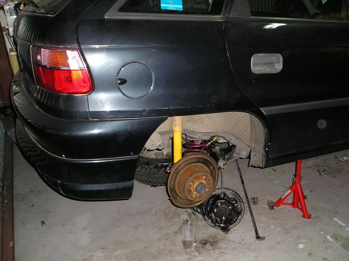 Lo primero que le hice al coche, antes que cualquier otra tunerada, fué cambiarle la suspension, despues de ahorrar un poco de dinero. La combinación elegida fué Koni Sport con muelles Vogtland, eleccion de la que me arrepiento ahora mismo aunque en su día estaba feliz :D