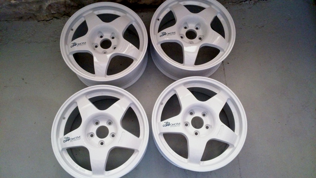 Ayer me llegaron las llantas de pintar. Son unas compomotive 17x7,5 ET42 de 5x112 ,las llevé a mecanizar para agrandar el hueco del buje a 65 mm y compré tornillos excéntricos.