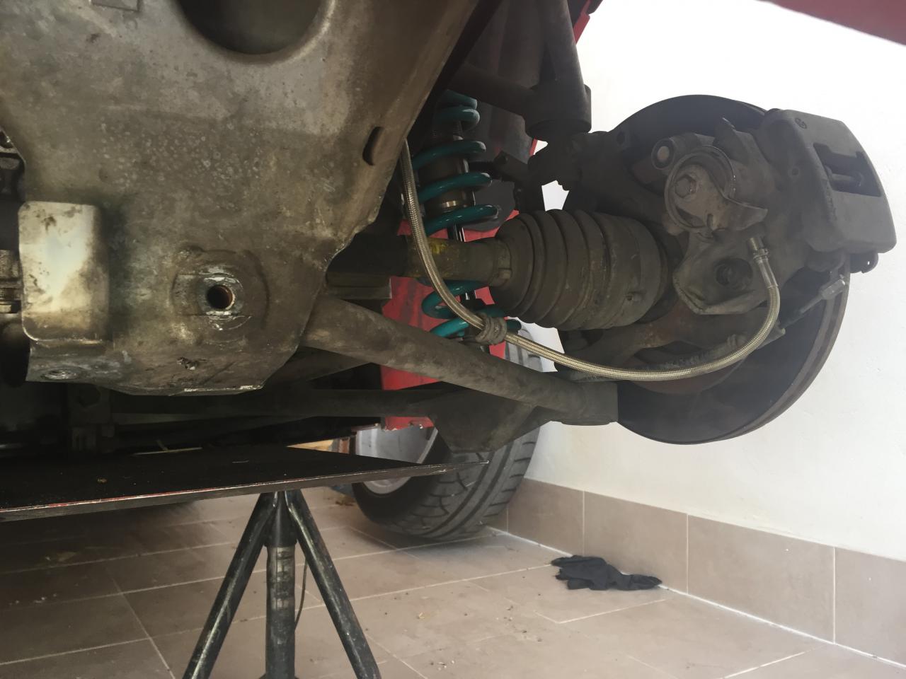 En las siguientes fotos se puede ver la bieleta vieja vs la nueva, la nueva gorma de anclaje (hay que hacer 4 agujeros al sub-chasis para amarrar la cazoleta de la nueva bieleta) y por ultimo como queda tras el montaje