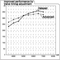 Este viene siendo, a grosso modo, el desplazamiento de la curva de potencia. En continua la que corresponde a retraso de árboles (ganancia en medios-altos) y en puntos la que corresponde a adelanto (ganancias en medios-bajos). A ello se sumarían las recomendaciones que he visto para retrasar cuando se instalan ITBs.