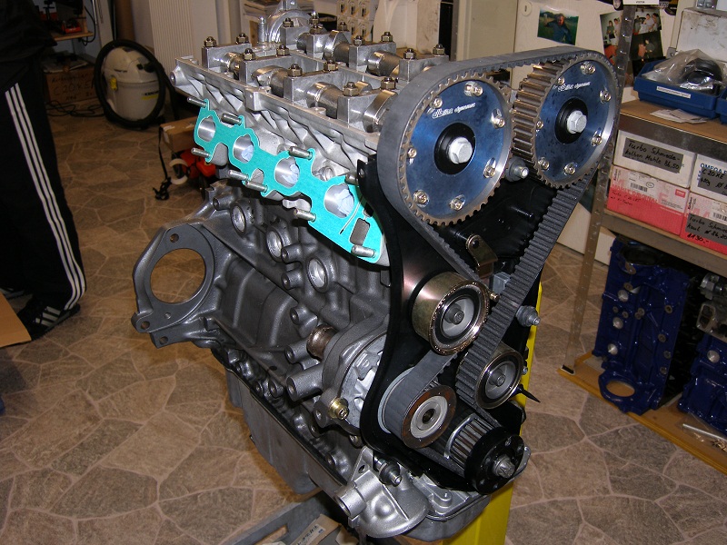 Lo que voy a probar de momento es a atrasar ambos árboles un diente completo, sin Vernier. Me encontré en foros alemanes varios motores preparados por Böhm Motosport que llevan unos árboles casi iguales a los míos y fijaros cómo llevan colocadas las poleas.