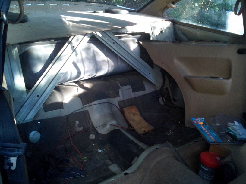 Cinturones, paneles de puerta (que como llevan un lamelunas interior que hace de guía, habrá que volver a ponerlos... pero recortados XD), paneles traseros y bandeja del maletero... todo fuera.