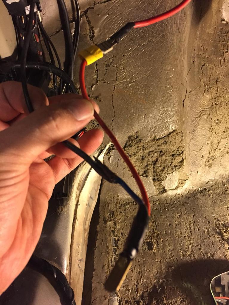 y esta ni la recordaba, un positivo de contacto, soldado a un cacho de cable azul con un faston, que a su vez tiene un añadido a un cable rojo también con más fastons.. pfffttt