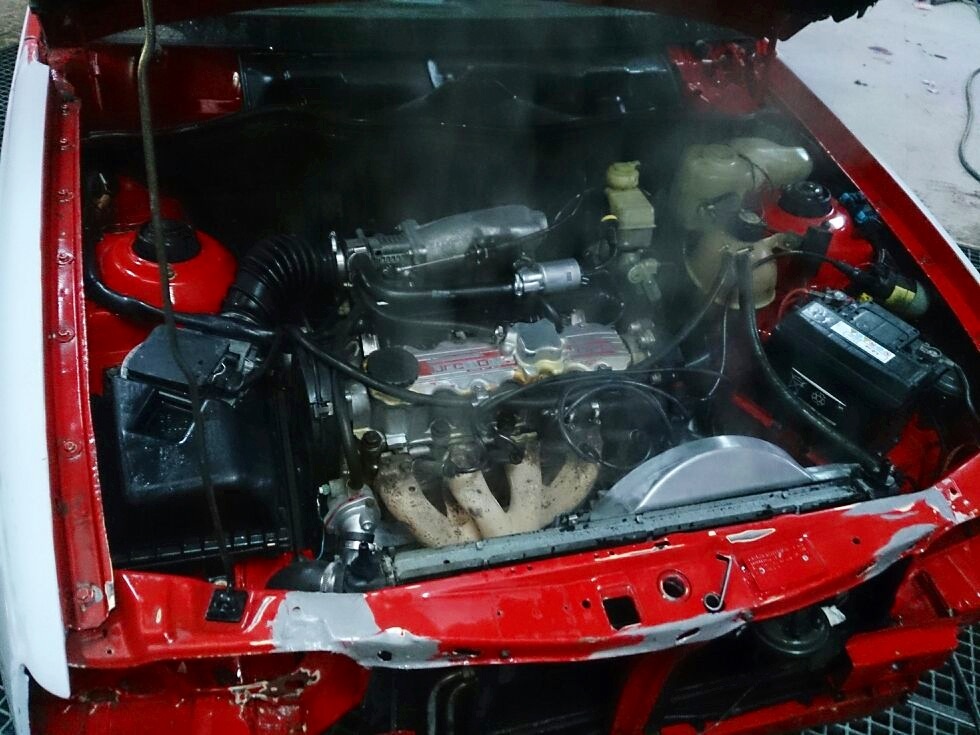 Hoy han terminado de aparejar y lijar lo poco que quedaba, han dado antigrava en algunos huecos donde hacia falta y han limpiado el coche para que el lunes entre en la cabina y lo pinten, ademas de una paqueña sorpresilla jeje (me han lavado el motor) y no mucho mas, por desgracia creo q no podre traer mas avances hasta finales de la semana que viene cuando el coche este completamente listo, ya que quiero ver el coche cuando ya este acabado jeje. Aqui unas fotillas: