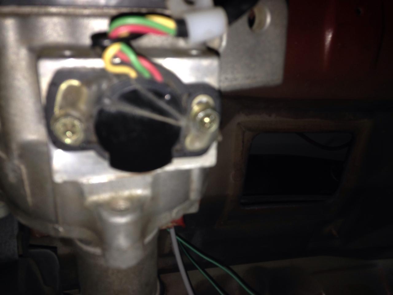 Buscando en Internet, encontré un vídeo en Youtube en el que explicaban que esto era un fallo común en las direcciones del Corsa C. Resumiendo, que el problema era el potenciómetro mal regulado. Este es el potenciómetro, que está situado debajo de la dirección.