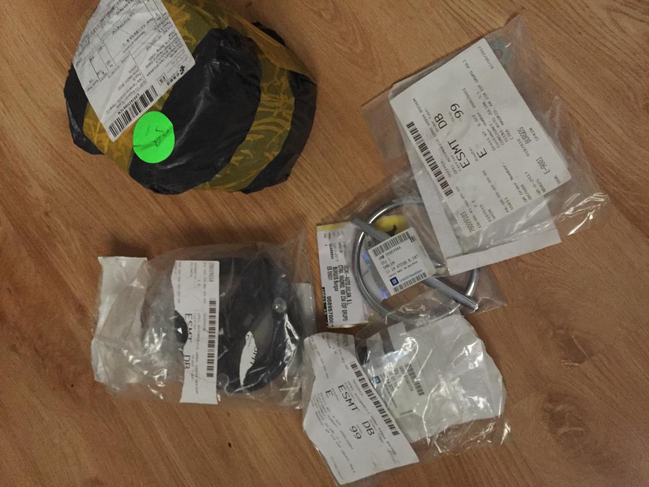Hice un pedido a Opel para poner piezas que le faltaban al coche, como la insignia delantera, tapas de los cinturones... también unas taloneras de goma (aun no están puestas) Gracias Sergio!!