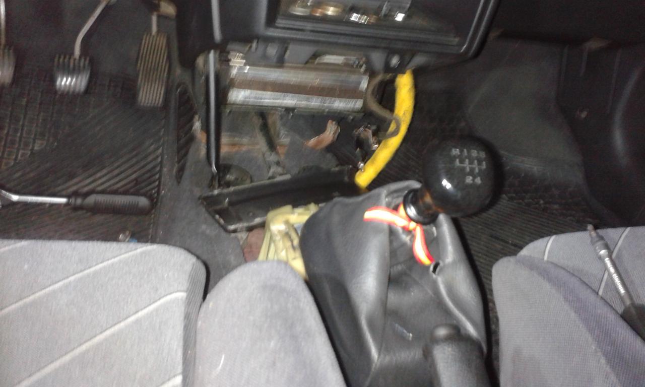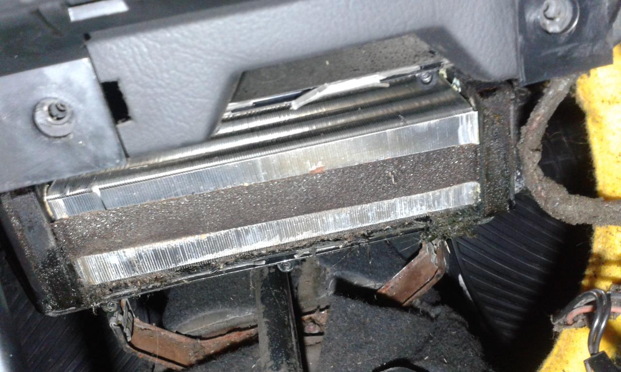Cuando quites el plástico donde va puesto el cenicero y demás, debajo, veras como una especie de caja negra, con 4 tornillos, cuando los quites, ahí tienes el radiador, si lo has suelto de los manguitos del motor, lo sacaras sin dificultad