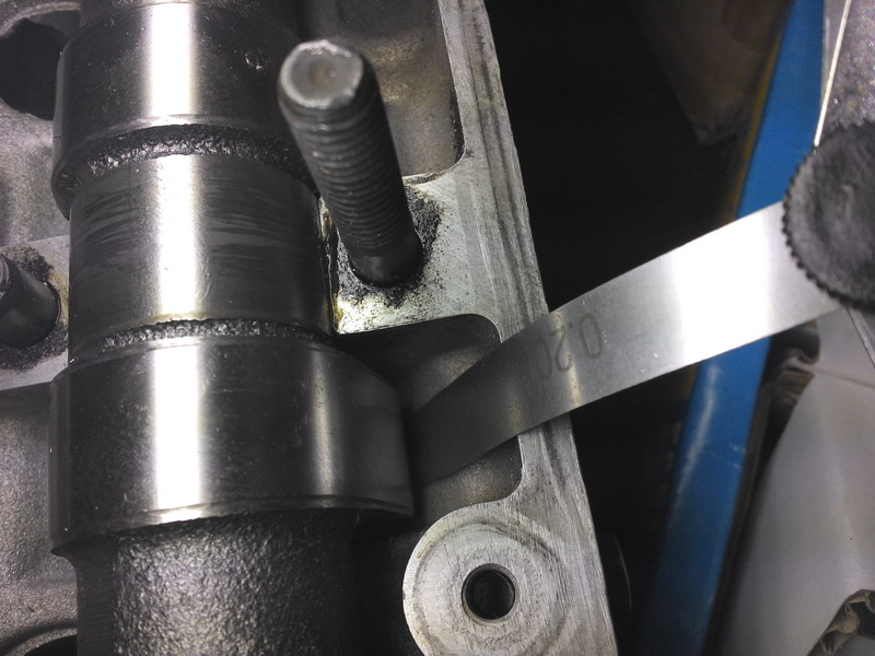 Las levas tienen mucha alzada,y mi miedo era que pegaran en la culata. Pero veo que los chicos de Catcams lo tenían bien medido. Dos simples décimas es lo que sobran en algunos puntos para no interferir. Por si acaso le he comido algo de material a la culata para curarse en salud.