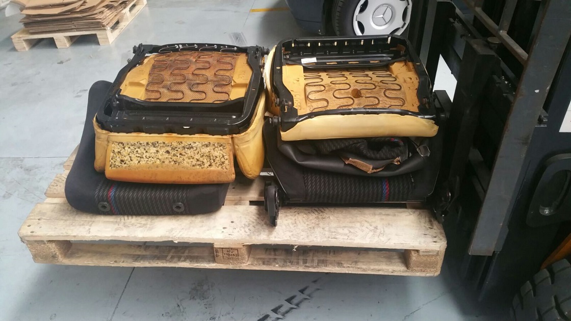 Os dejo fotos de la restauraciòn de los asientos delanteros que he mandado a cambiar las telas laterales que estaban gastadas por el paso de los añoss,ayer mismo me llegaron y hoy espero dejarlos montados,esta operaciòn la hice con los traseros pero aùn no estàn listos.el resultado ahi està.saludosssss