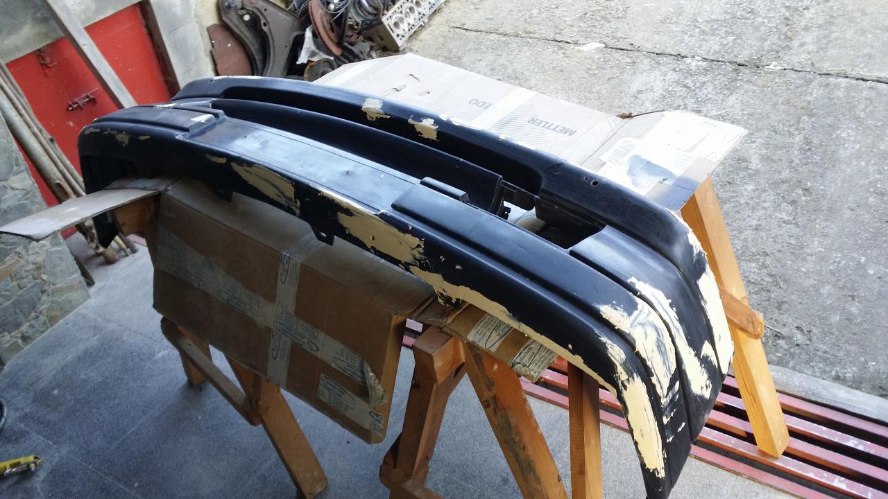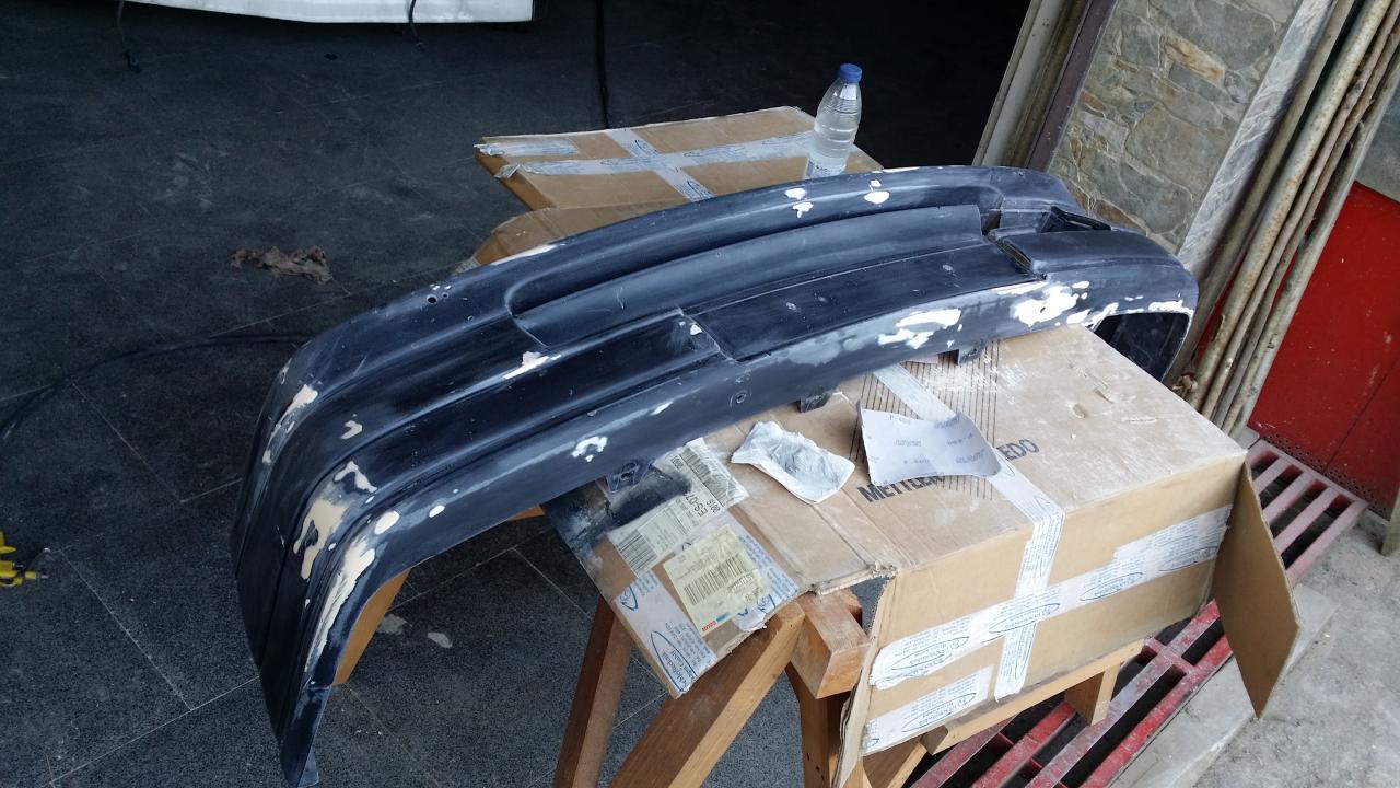 En la defensa, que no tenia ningun rastro de esa pintura, no hubo nada anormal, solamente el polvo logico de pintar donde se pintó, y las marcas precedentes que se dejaron sin reparar. También le fabriqué las grapas ante la imposibilidad de encontrar una defensa con ellas sanas.
