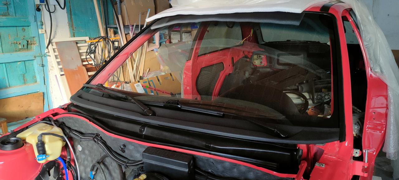 Montamos la luna delantera nueva, gracias al seguro, se me rompió al desmontarla.