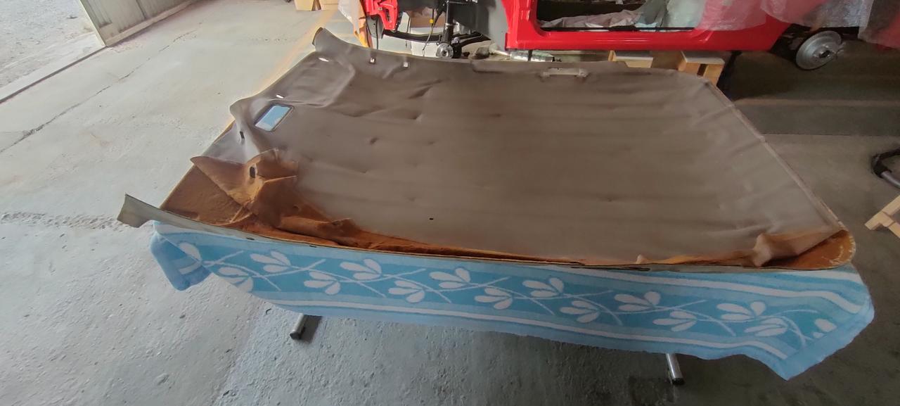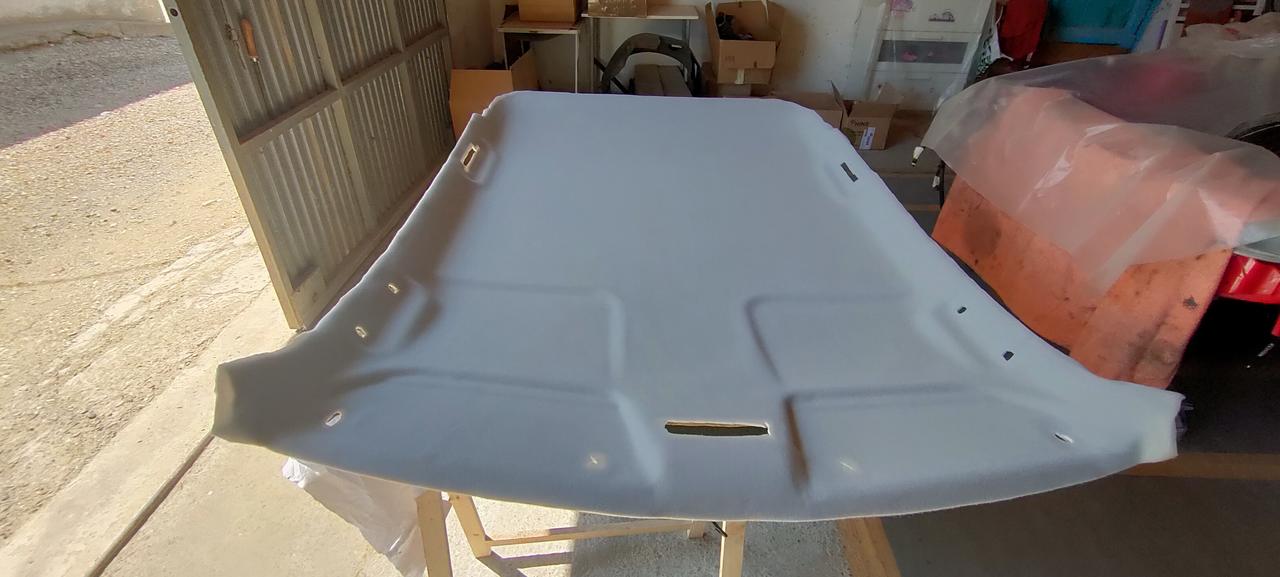 El tapicero me recomendó, que una vez pegado la tela en el techo, es mejor dejarlo una semana sin tocar. Porque las telas de techo, llevan un pequeño acolchado, que cuando lo tocas, se hunde pero, vuelve a su forma después de dejar de presionar y si lo manipulamos recién pegados para su colocación, esa pequeña presión que ejercemos sobre el techo, luego no recupera y se queda todos los dedos marcados.