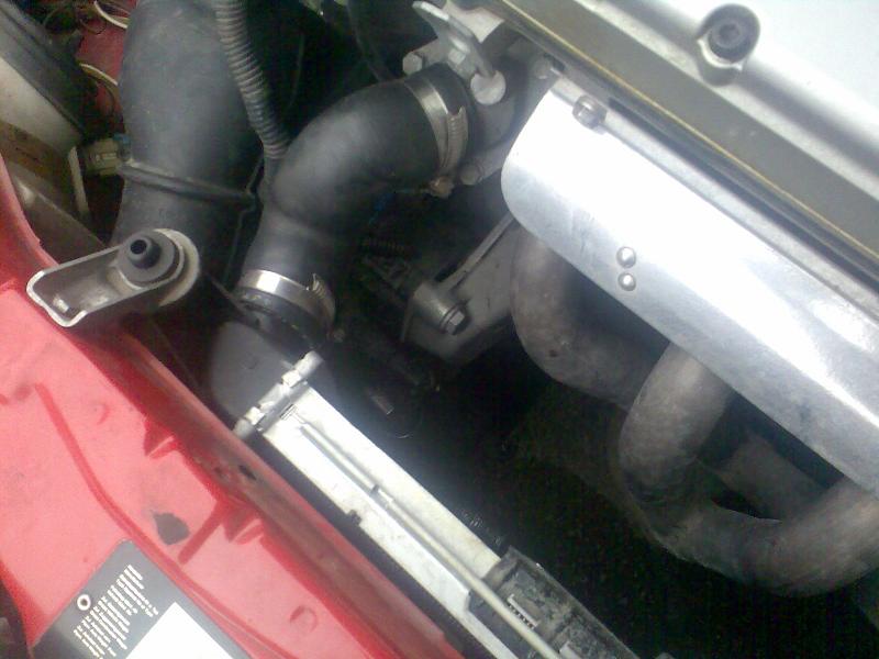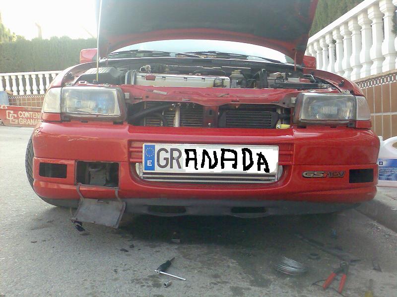 Le he cambiado el radiador del agua por el de astra con a/c de serie, para evitar que me pegue contra el manguito superior de radiador (este tambien se lo he cambiado) el tubo de admision del turbo. Tuve problemas porque me pegaba con el condensador de a/c de davia, tuve que modicarle las pletinas que sujetan el condensador para que se quedara mas cerca de la traviesa delantera, esto es porque el radiador que le he puesto se queda mas metido hacia dentro que el otro.