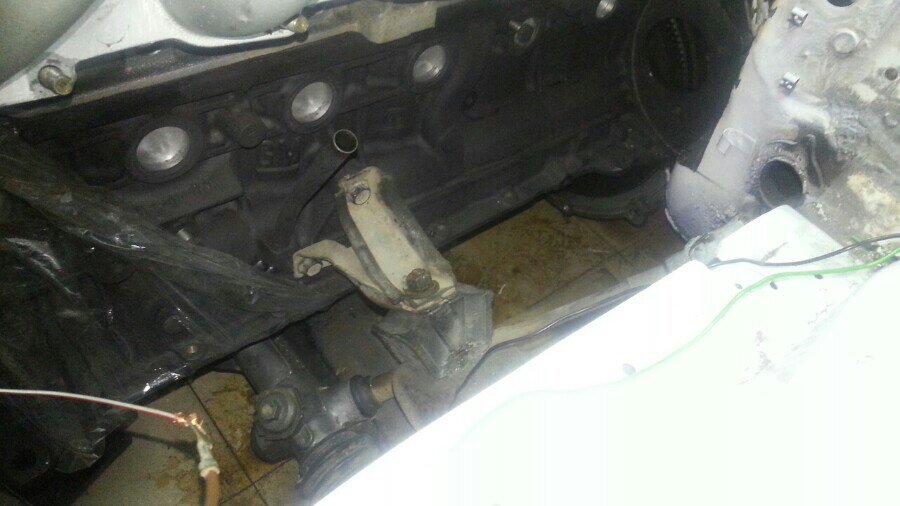 Pues sí que te ha quedado atrás... En conversiones de este tipo tengo visto modificar los apoyos en el subchasis para que el motor vaya algo hacia delante. Tiene que ser por temas de espacio, pero si has librado cortando el túnel ya valdrá.