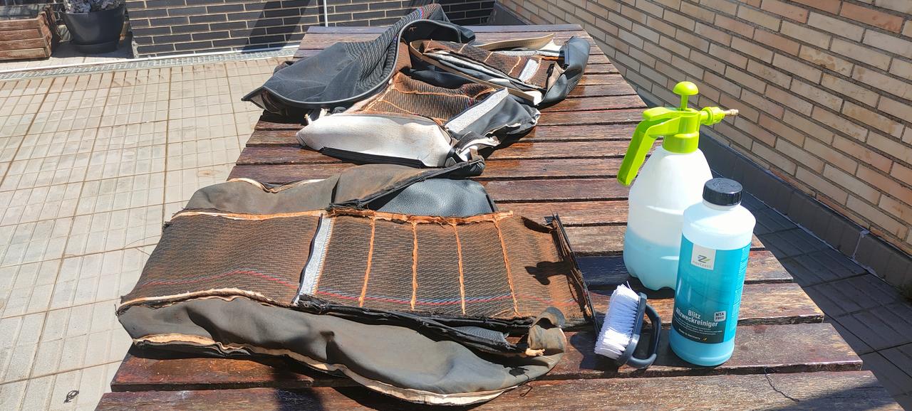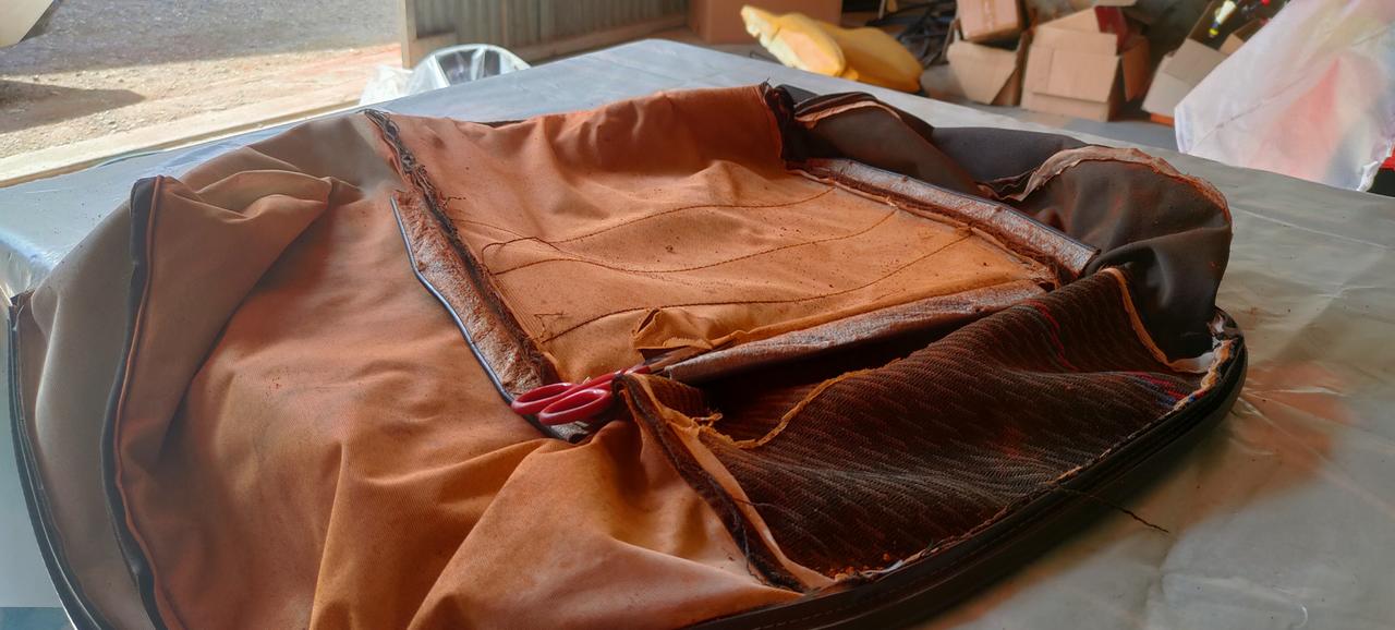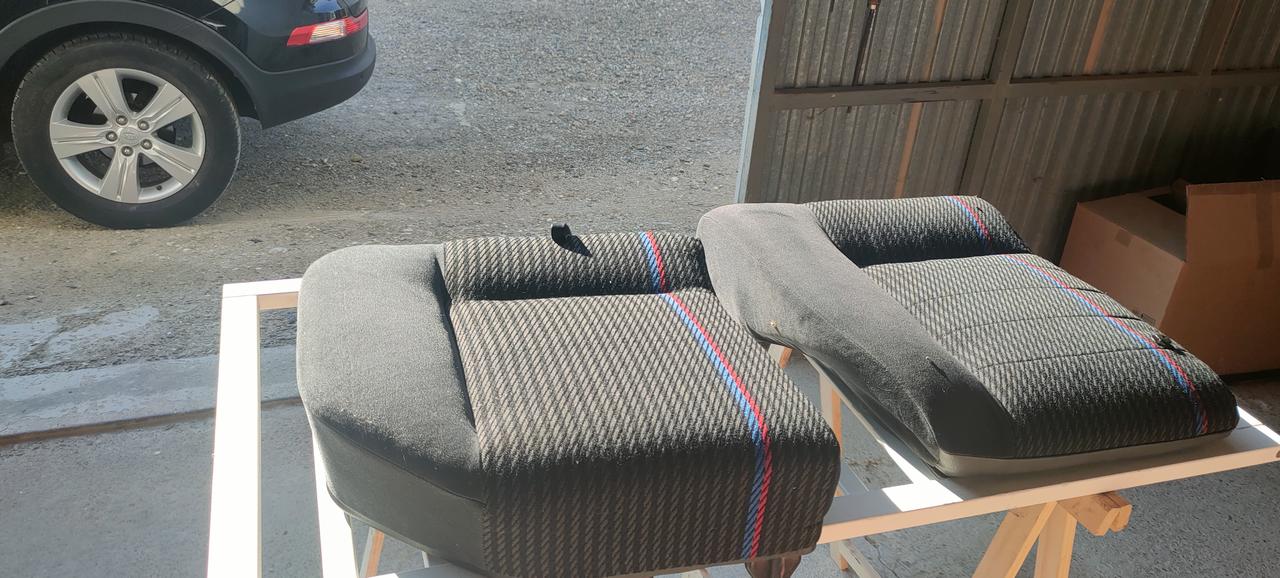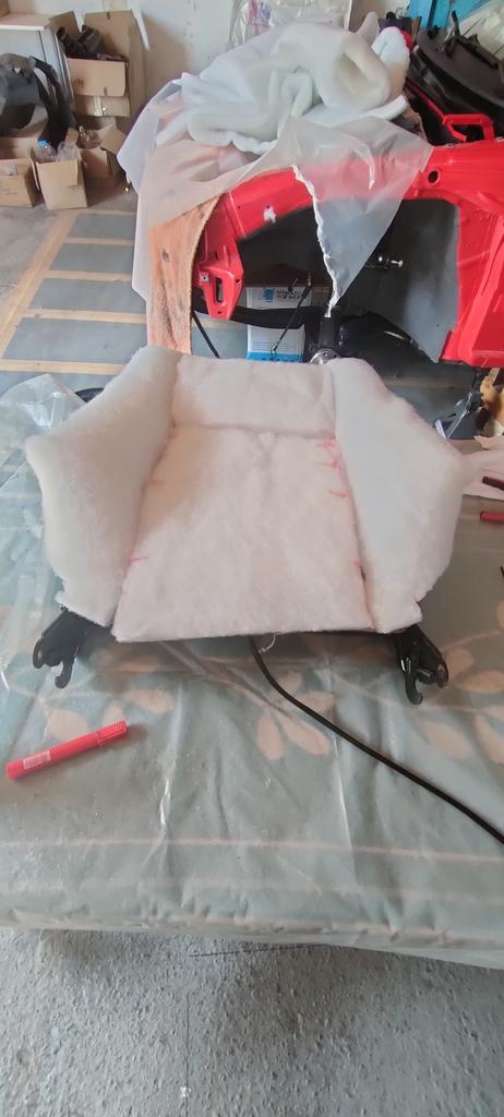 Los astras de 4 y 5 puertas, llevan un apoya brazos y compuerta para el maletero..Pues al lío, compramos un respaldo del desguace de un 5 puertas, lo desmontamos y lo llevamos a una costurera y con las dos fundas de asiento, la del desguace y la mía, hicimos uno..
