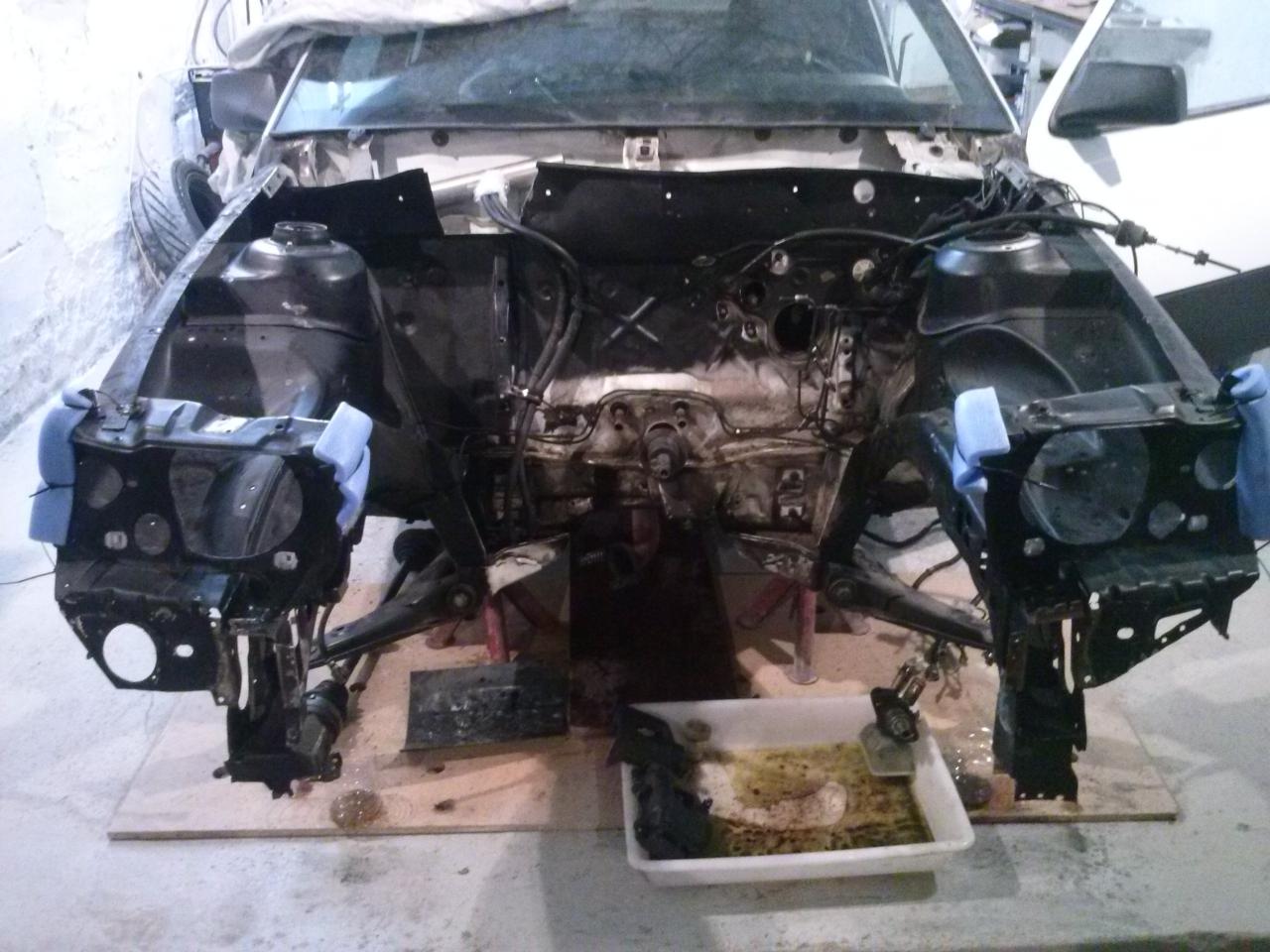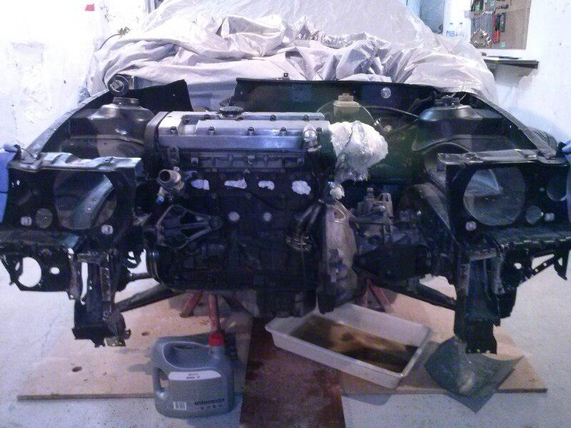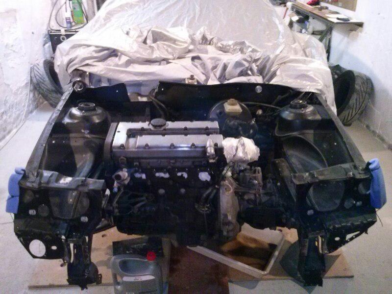 Bueno, pues un paso más, frontal extirpado para rehacerlo y substituirlo por uno tubular extraible. Mañana motor fuera y presentación con el V6, más que nada para ver qué tal se llevan xD: