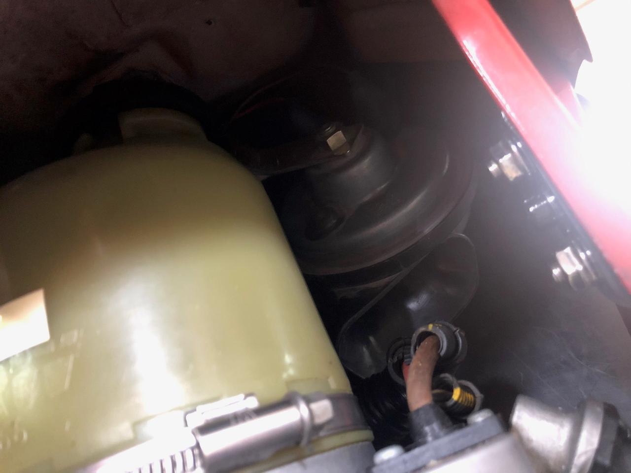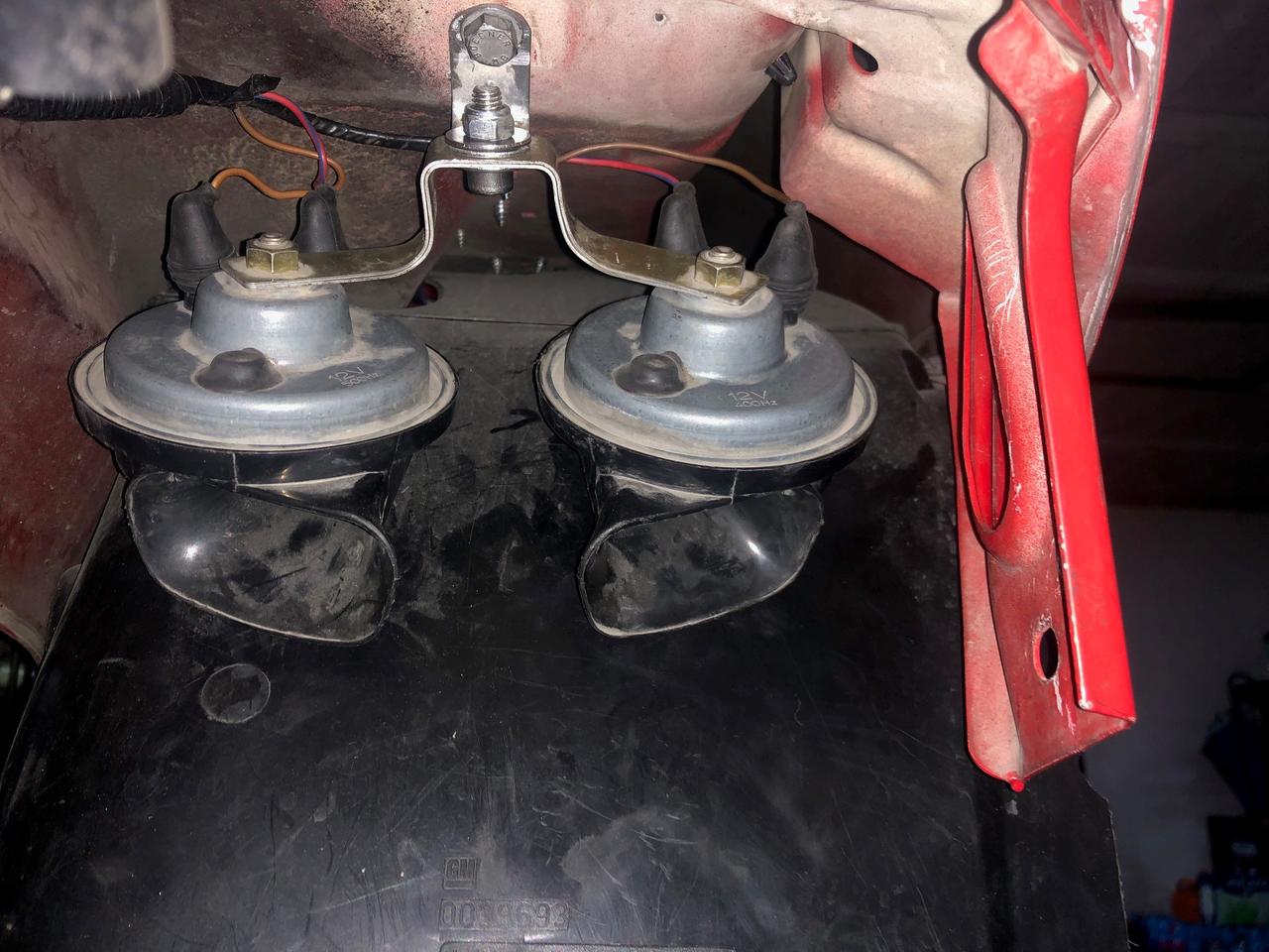 Donde va la bomba ahora, originalmente lleva el claxon. Tuve que fabricar una escuadra y modificar su cogida para darle espacio a la bomba. Ahora está a mm del paso de rueda y de la bomba, pero todo ok jajaj