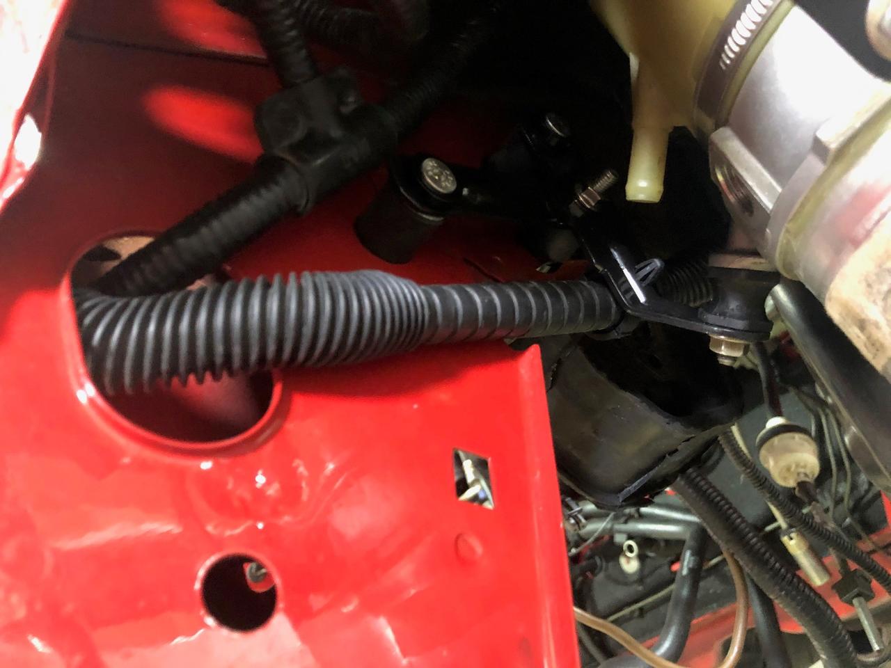 Una vez fijada correctamente, con el mismo tubo corrugado que lleva originalmente, comencé a pasar los cables por el mejor sitio disponible: