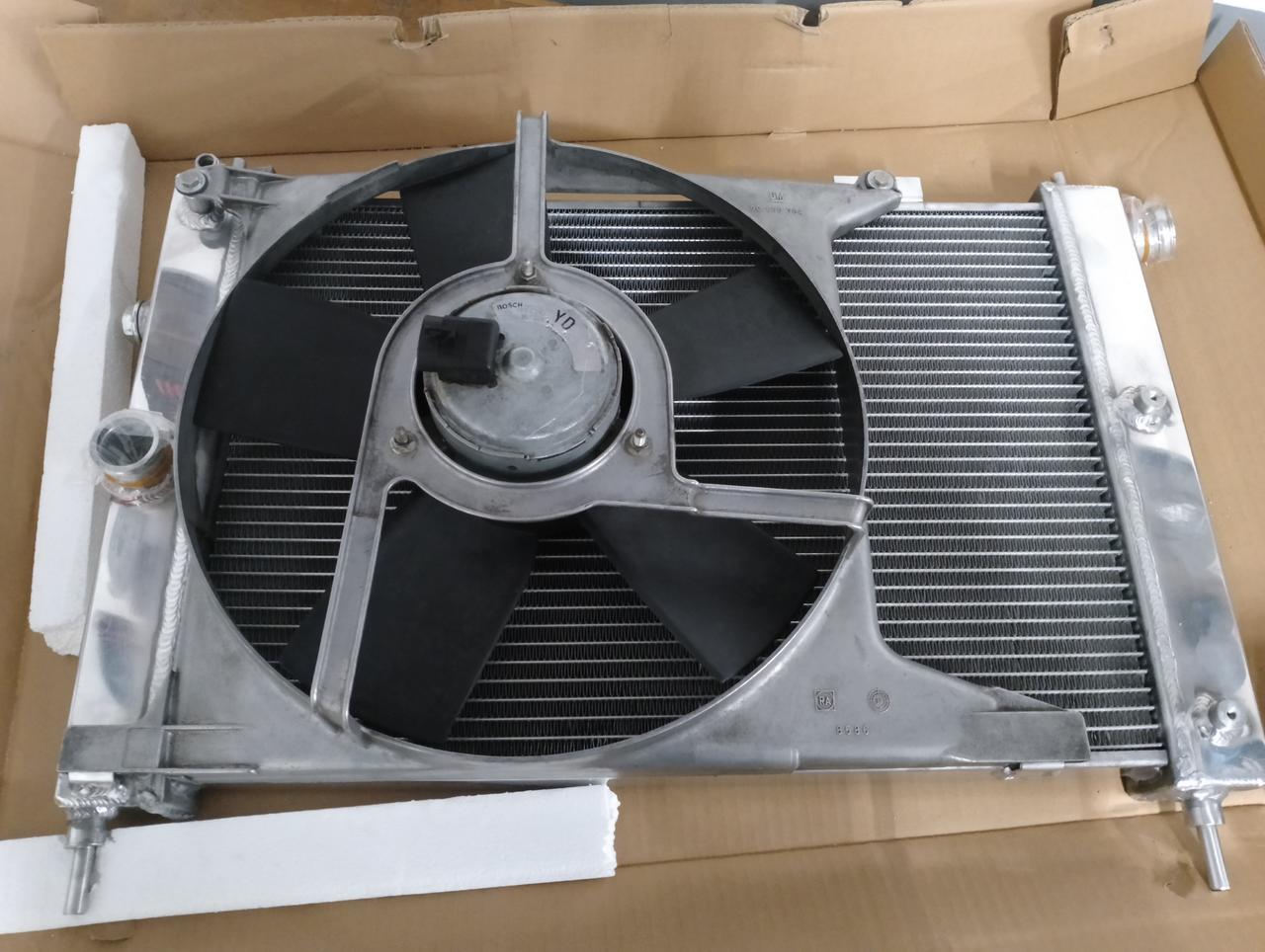 Ya ha llegado el radiador. Mucho antes de lo previsto. No tiene mala pinta. No pesa nada comparado con el otro. Para el elctro he tenido que doblar un poco las patillas inferiores pero ha entrado bien. Y al tornillo interior le he pasado un macho de métrica 6 porque traia de metrica 5. Algo raro, porque todos los demas que trae son M6. Mañana a ver si puedo probarlo.