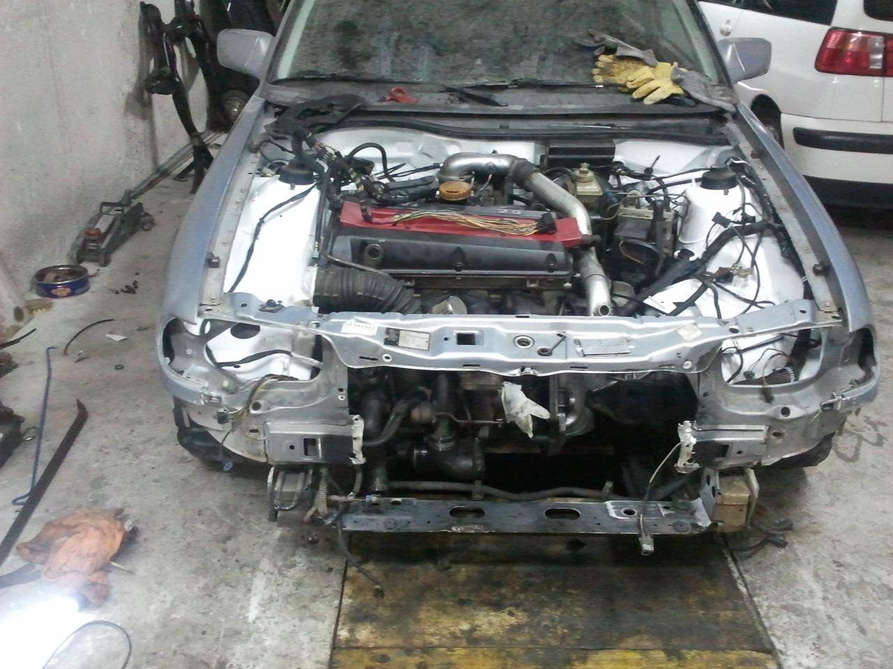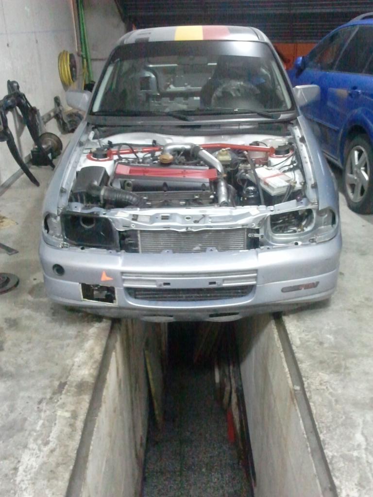 montado motor, con caja cambios opel f16 (podia haber montado la f20, pero preferi montar la f16 por ser mas corta) embrague opel, maza embrague saab, palieres saab,