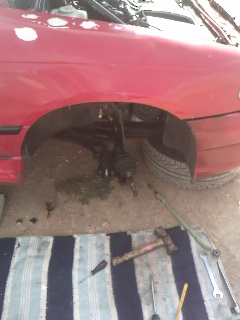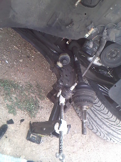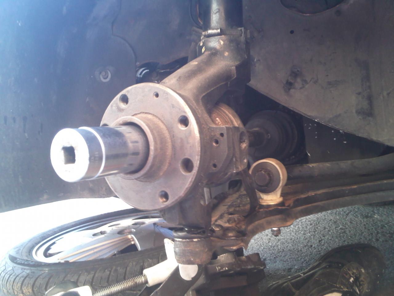 3,aflojar tuercas de rotulas de suspension y de direccion,tuerca del buje y tuercas de 13 de la copela.