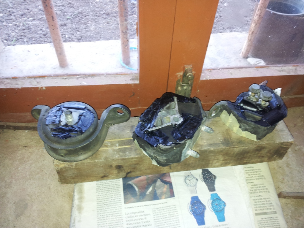 Entre que se esperaba por las piezas y se iva adecentando todo , se aprovechó para rellenar los tacos de motor con poliuretano de lunas, dejandolo secar semanas...