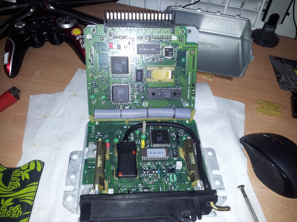 El tema de centralita , pues se abrió y se le pusieron los chips made by Reinoso ( gracias desde aquí ) , y los conectores de junto a la centralita se enchufaron a las conexiones del coche gracias a Pity (gracias de nuevo).