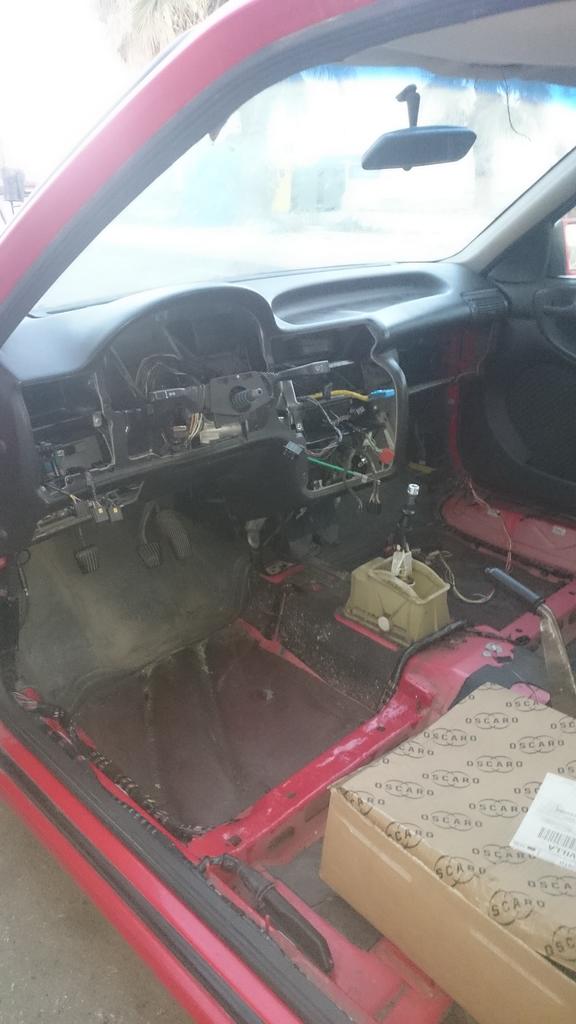 Pues vamos avanzando, se ha reencintado parte de la instalación y se ha montado completamente, modifique por la parte del vano motor la salida del módulo de calefacció/A.a, hice una plantilla y como se puede ver me equivoque a la primera jeje el circulo es del diavia y el marcado para el de opel, estaba la opción de intercambiar la salida de uno a otro y asi evitar el cortar la chapa, pero prefería no toquetear mucho el modulo, y poco más, el salpicadero esta montado y las moquetas secandose, ya mismo tengo el interior completo, a falta de tapizar el techo, y en breves tocara cambio de corazón