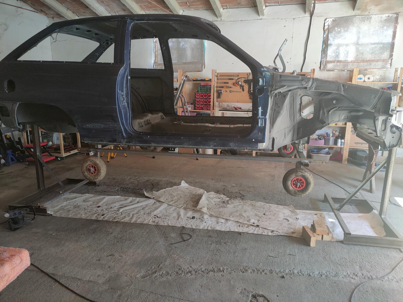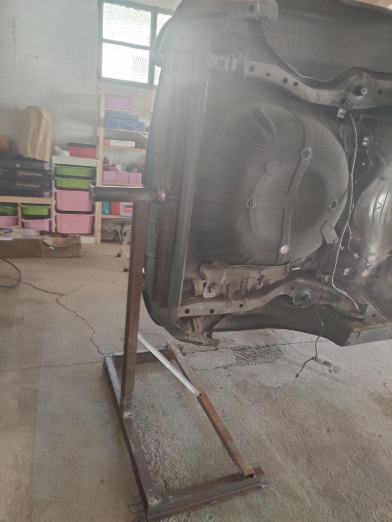 Los tacos , eran provisionales, solo para coger altura, y poder subirlo en unos volteadores caseros soldados con la ayuda de un amigo...no trabajé debajo así como estaba en la foto.