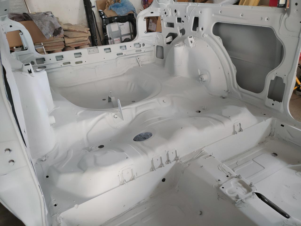 Y después, lo mismo que en el suelo del interior, sellamos con sicaflex todas las uniones de chapa, enderezamos el nervio donde se apoya el coche para subirlo en los elevadores....llevaba eso más curvas que la carretera de mi pueblo..
