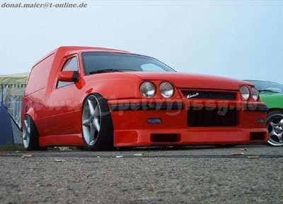 Jeje ese kadett van con el kit junior jeje la verdad que el paragolpes trasero es una autentica obra de arte, en cuanto al paragolpes delantero la verdad que tengo malas experiencias con el, no lo recomiendo es muy blando y se dobla con nada todo al tener la entrada de aire tan larga y sin ningun transversal por lo demas una autentica obra de arte, inclusibe el tablero digital muy espectacular.