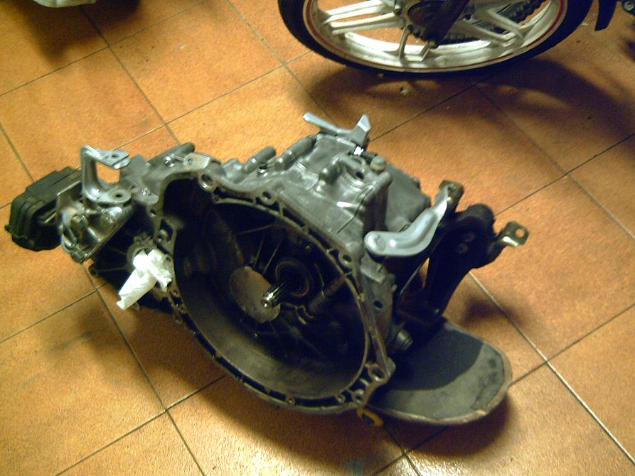 El embrague esta montado nuevo tmb (aunque no se ve en la foto), pero la caja cambios no se la voy a montar para que el motor pese menos al sacarlo de la cochera, que tiene mucha cuesta.